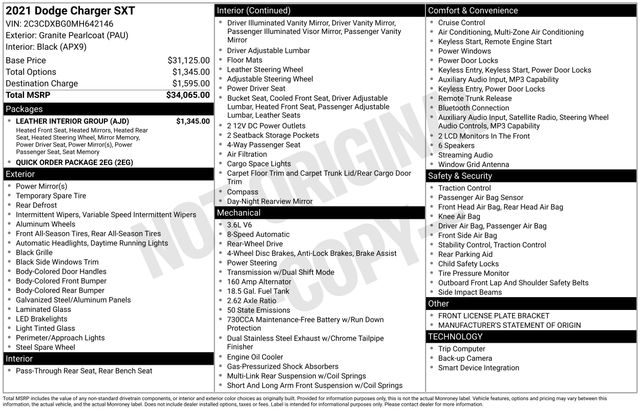 This 2021 Dodge Charger SXT delivers a perfect blend of style, comfort, and everyday performance. Powered by a capable V6 engine, it provides smooth acceleration and confident handling, making it ideal for both city driving and open-road cruising. The exterior features Dodges signature bold design with sleek lines and a commanding presence, while the interior offers a spacious, comfortable cabin with quality materials, a user-friendly touchscreen display, Apple CarPlay and Android Auto integration, Bluetooth connectivity, and practical storage solutions. Safety is built in with multiple airbags, stability control, and a rearview camera to help keep you secure behind the wheel. With its combination of modern technology, classic Dodge style, and reliable performance, the Charger SXT is a versatile sedan that stands out in its class. The online price already reflects a $1,000 financing discount when you finance through Salt Lake Valley Chrysler Dodge Jeep Ram, making this sporty and practical sedan an even smarter choice.