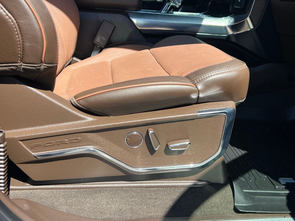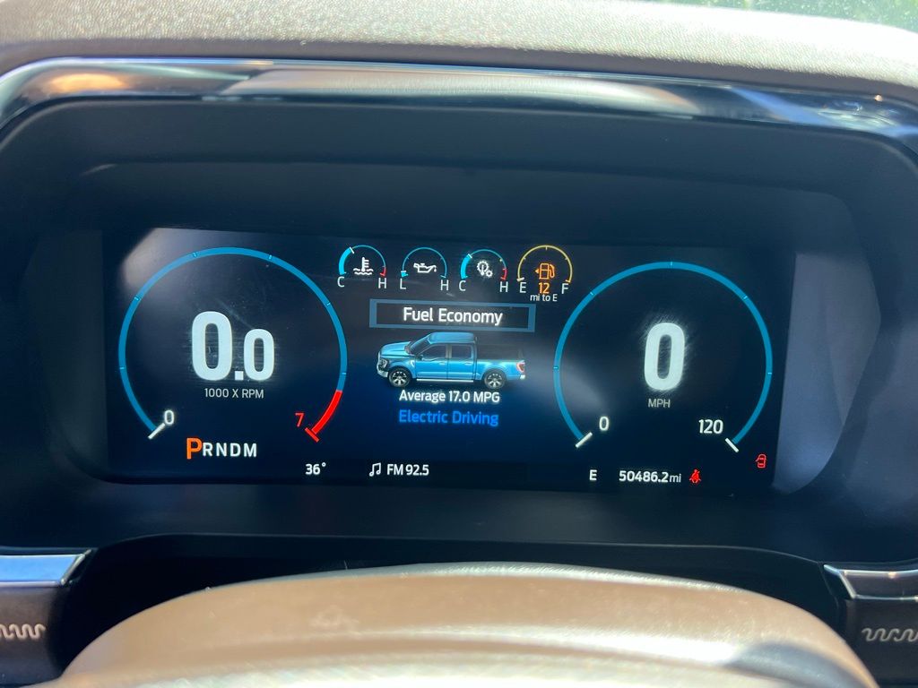 Experience the pinnacle of truck luxury in this F-150 King Ranch with rich Java leather interior. The innovative 3.5L PowerBoost hybrid V6 delivers impressive 430 horsepower and exceptional fuel economy through a 10-speed automatic, while offering 7.2kW Pro Power Onboard generator capability. With 50,485 miles and 4WD confidence, this King Ranch features premium leather, heated/ventilated seats, Unleashed sound system, and 12-inch SYNC 4 touchscreen.