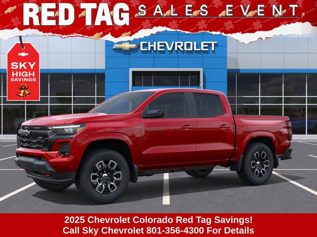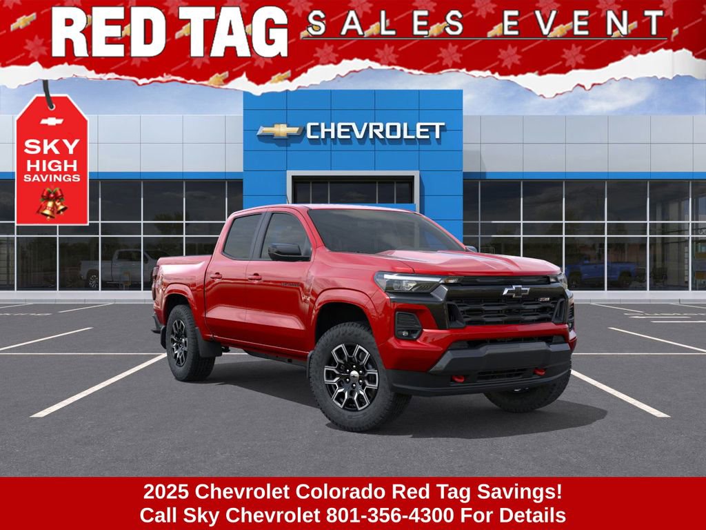 Experience the new Chevrolet Colorado, available now at Sky Chevrolet of Provo! With bold design, advanced technology, and dependable performance, Chevrolet makes every mile more exciting. From Utah Valleyâs city streets to mountain canyon drives, the Colorado is built to handle it all with confidence. Call 801-356-4300 today to schedule your test drive and see what makes it stand out! Radiant Red Tintcoat 2025 Chevrolet Colorado Z71 4WD 8-Speed Automatic 2.7L I4 Turbocharged DOHC 16V LEV3-ULEV50 310hp 4WD. Price includes: $1750 - Chevrolet Consumer Cash Program $1,000 Down Payment Assistance. Must Finance with GM Financial. $1,500 trade in allowance program for customers that own a 2018 or newer passenger car or truck with less than 80,000 miles and trade in their vehicle towards the purchase of a new 2025-2026 New Chevrolet. Some restrictions may apply. Contact dealer for details.
