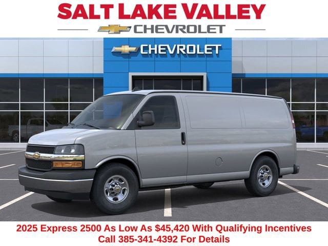 Discover the new Chevrolet Express 2500 at Salt Lake Valley Chevrolet in Salt Lake City! With bold design, modern technology, and reliable performance, Chevrolet makes every drive exciting. Whether itâs city streets or canyon roads, the Express 2500 is ready for anything. Call us today at 801-969-8221 to schedule a time to see it! --- 2025 Chevrolet Express 2500 Silver Ice Metallic 6.6L V8 --- Final price excludes tax, tag, title, documentation fees, dealer-installed options, and any market-based pricing adjustments. Financing through GM Financial is required for all discounts to apply. Special finance offers may not be combined with certain factory incentives. While we strive for accuracy, errors may occur please verify all information with a sales representative. For the most accurate pricing, call (801) 969-8221 or visit us in person. Prices and payments are subject to change based on manufacturer incentives. - Price includes $1,000 Down Payment Assistance. Must Finance with GM Financial - Price includes $1,500 trade in allowance program for customers that own a 2018 or newer passenger car or truck with less than 80,000 miles and trade in their vehicle towards the purchase of a new 2024-2025 Chevrolet. Some restrictions may apply. Contact dealer for details