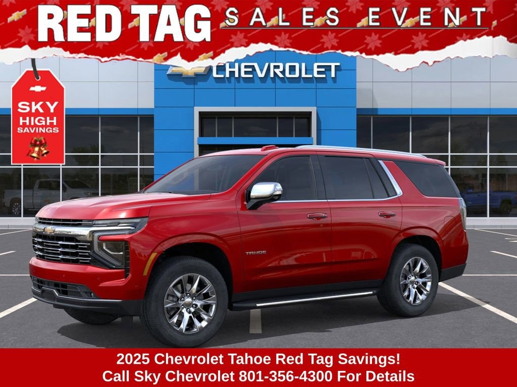 Experience the new Chevrolet Tahoe, available now at Sky Chevrolet of Provo! With bold design, advanced technology, and dependable performance, Chevrolet makes every mile more exciting. From Utah Valleyâs city streets to mountain canyon drives, the Tahoe is built to handle it all with confidence. Call 801-356-4300 today to schedule your test drive and see what makes it stand out! Radiant Red Tintcoat 2025 Chevrolet Tahoe Premier 4WD 10-Speed Automatic with Overdrive EcoTec3 5.3L V8 4WD, Black Leather. Price includes: $1000 - Chevrolet Consumer Cash Program $1,000 Down Payment Assistance. Must Finance with GM Financial. $1,500 trade in allowance program for customers that own a 2018 or newer passenger car or truck with less than 80,000 miles and trade in their vehicle towards the purchase of a new 2025-2026 New Chevrolet. Some restrictions may apply. Contact dealer for details.