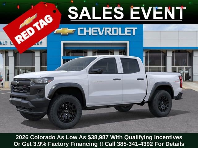 Discover the new Chevrolet Colorado at Salt Lake Valley Chevrolet in Salt Lake City! With bold design, modern technology, and reliable performance, Chevrolet makes every drive exciting. Whether itâs city streets or canyon roads, the Colorado is ready for anything. Call us today at 801-969-8221 to schedule a time to see it! --- 2026 Chevrolet Colorado Summit White 2.7L I4 Turbocharged DOHC 16V LEV3-ULEV50 310hp --- Final price excludes tax, tag, title, documentation fees, dealer-installed options, and any market-based pricing adjustments. Financing through GM Financial is required for all discounts to apply. Special finance offers may not be combined with certain factory incentives. While we strive for accuracy, errors may occur please verify all information with a sales representative. For the most accurate pricing, call (801) 969-8221 or visit us in person. Prices and payments are subject to change based on manufacturer incentives. - Price includes - $500 - Chevrolet Consumer Cash Program - Price includes $1,000 Down Payment Assistance. Must Finance with GM Financial - Price includes $1,500 trade in allowance program for customers that own a 2018 or newer passenger car or truck with less than 80,000 miles and trade in their vehicle towards the purchase of a new 2024-2025 Chevrolet. Some restrictions may apply. Contact dealer for details
