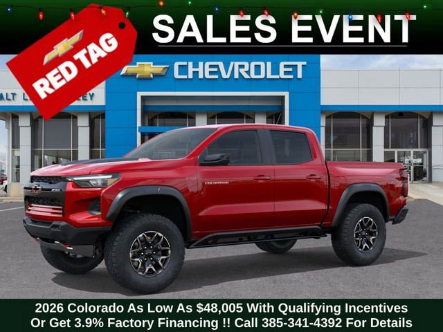 Discover the new Chevrolet Colorado at Salt Lake Valley Chevrolet in Salt Lake City! With bold design, modern technology, and reliable performance, Chevrolet makes every drive exciting. Whether itâs city streets or canyon roads, the Colorado is ready for anything. Call us today at 801-969-8221 to schedule a time to see it! --- 2026 Chevrolet Colorado Radiant Red Tintcoat 2.7L I4 Turbocharged DOHC 16V LEV3-ULEV50 310hp --- Final price excludes tax, tag, title, documentation fees, dealer-installed options, and any market-based pricing adjustments. Financing through GM Financial is required for all discounts to apply. Special finance offers may not be combined with certain factory incentives. While we strive for accuracy, errors may occur please verify all information with a sales representative. For the most accurate pricing, call (801) 969-8221 or visit us in person. Prices and payments are subject to change based on manufacturer incentives. - Price includes - $500 - Chevrolet Consumer Cash Program - Price includes $1,000 Down Payment Assistance. Must Finance with GM Financial - Price includes $1,500 trade in allowance program for customers that own a 2018 or newer passenger car or truck with less than 80,000 miles and trade in their vehicle towards the purchase of a new 2024-2025 Chevrolet. Some restrictions may apply. Contact dealer for details