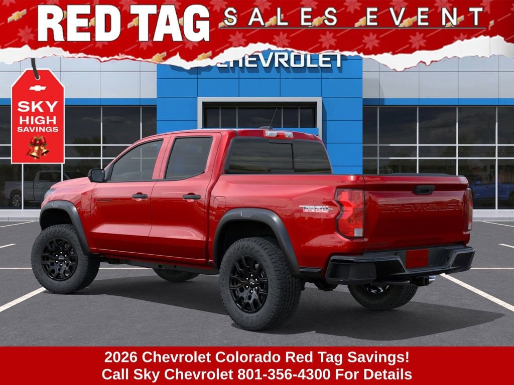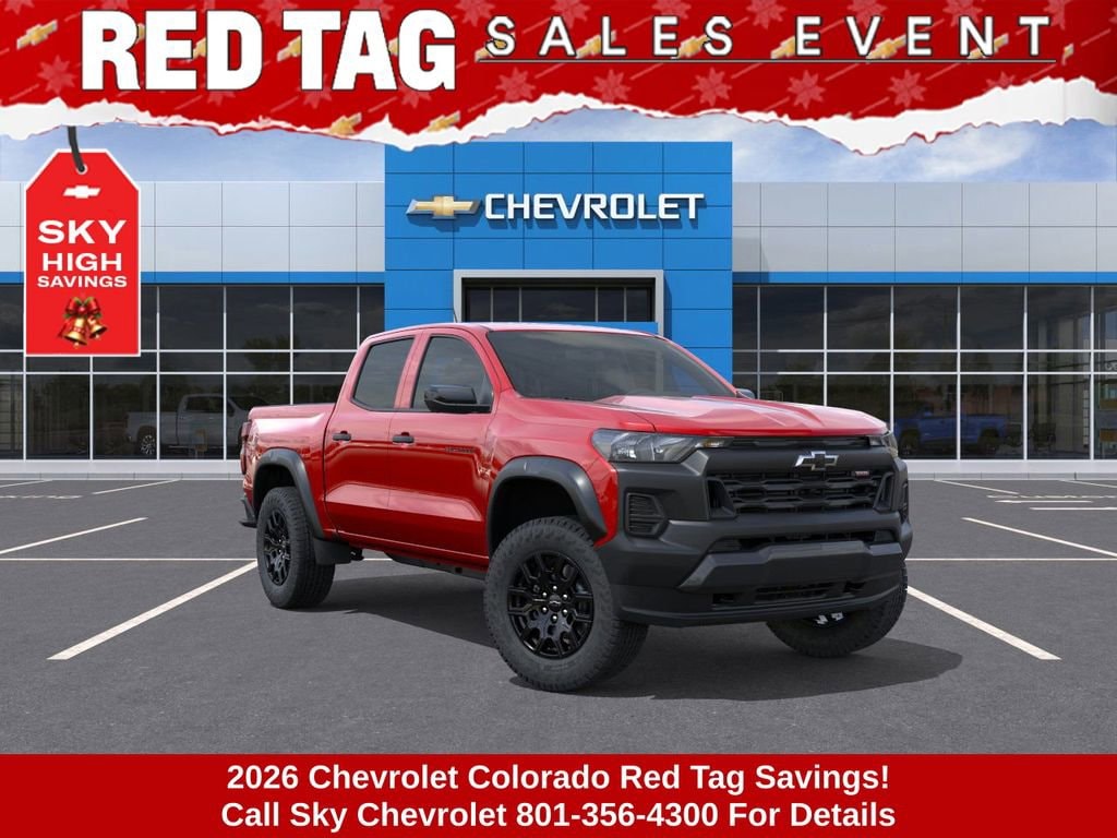 Experience the new Chevrolet Colorado, available now at Sky Chevrolet of Provo! With bold design, advanced technology, and dependable performance, Chevrolet makes every mile more exciting. From Utah Valleyâs city streets to mountain canyon drives, the Colorado is built to handle it all with confidence. Call 801-356-4300 today to schedule your test drive and see what makes it stand out! Radiant Red Tintcoat 2026 Chevrolet Colorado Trail Boss 4WD 8-Speed Automatic 2.7L I4 Turbocharged DOHC 16V LEV3-ULEV50 310hp 4WD. Price includes: $500 - Chevrolet Consumer Cash Program $1,000 Down Payment Assistance. Must Finance with GM Financial. $1,500 trade in allowance program for customers that own a 2018 or newer passenger car or truck with less than 80,000 miles and trade in their vehicle towards the purchase of a new 2025-2026 New Chevrolet. Some restrictions may apply. Contact dealer for details.