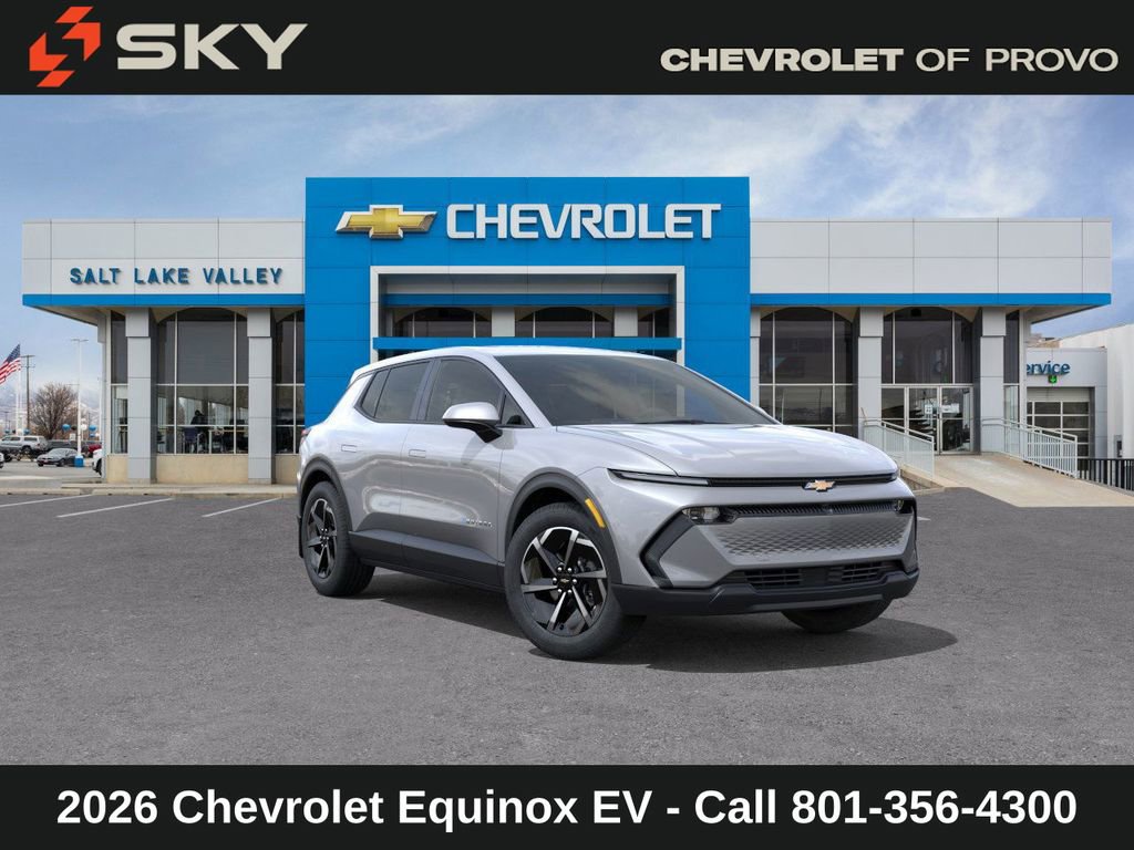 Experience the new Chevrolet Equinox EV, available now at Sky Chevrolet of Provo! With bold design, advanced technology, and dependable performance, Chevrolet makes every mile more exciting. From Utah Valleyâs city streets to mountain canyon drives, the Equinox EV is built to handle it all with confidence. Call 801-356-4300 today to schedule your test drive and see what makes it stand out! Sterling Gray Metallic 2026 Chevrolet Equinox EV LT FWD 1-Speed Automatic Electric Motor Price includes: $6500 - Chevrolet Consumer Cash Program $1,500 trade in allowance program for customers that own a 2018 or newer passenger car or truck with less than 80,000 miles and trade in their vehicle towards the purchase of a new 2025-2026 New Chevrolet. Some restrictions may apply. Contact dealer for details.