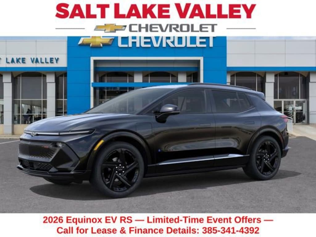 Discover the new Chevrolet Equinox EV at Salt Lake Valley Chevrolet in Salt Lake City! With bold design, modern technology, and reliable performance, Chevrolet makes every drive exciting. Whether itâs city streets or canyon roads, the Equinox EV is ready for anything. Call us today at 801-969-8221 to schedule a time to see it! --- 2026 Chevrolet Equinox EV Black Electric Drive Unit --- Final price excludes tax, tag, title, documentation fees, dealer-installed options, and any market-based pricing adjustments. Financing through GM Financial is required for all discounts to apply. Special finance offers may not be combined with certain factory incentives. While we strive for accuracy, errors may occur please verify all information with a sales representative. For the most accurate pricing, call (801) 969-8221 or visit us in person. Prices and payments are subject to change based on manufacturer incentives. - Price includes - $3000 - Chevrolet Consumer Cash Program - Price includes $1,000 Down Payment Assistance. Must Finance with GM Financial - Price includes $1,500 trade in allowance program for customers that own a 2018 or newer passenger car or truck with less than 80,000 miles and trade in their vehicle towards the purchase of a new 2024-2025 Chevrolet. Some restrictions may apply. Contact dealer for details