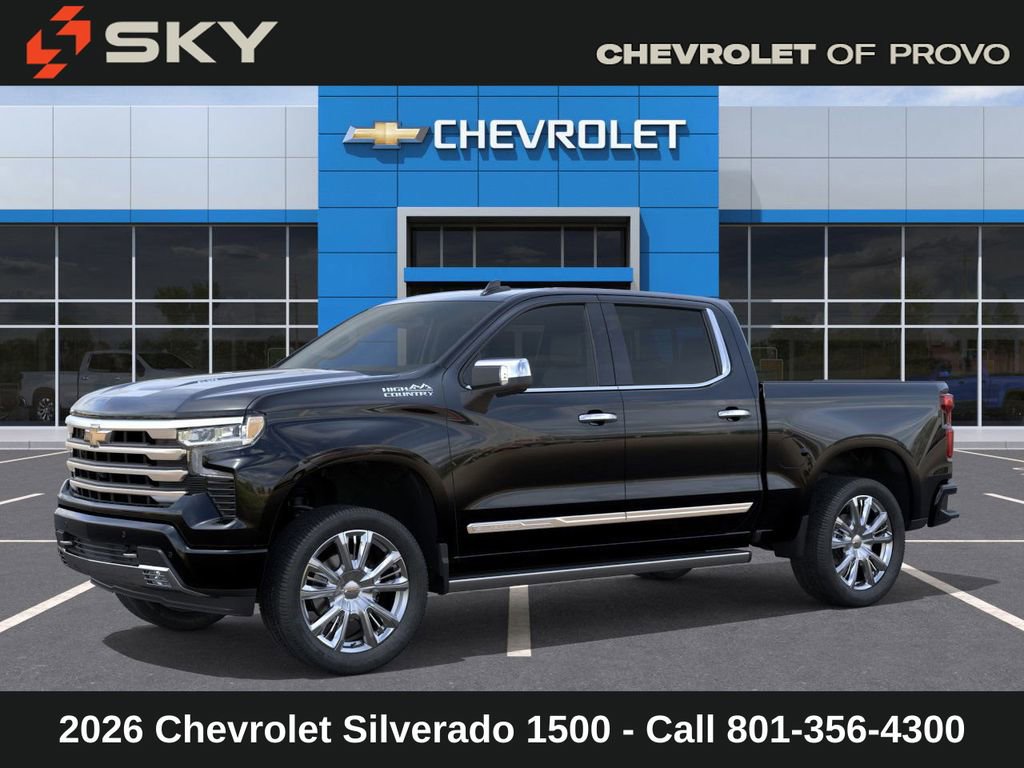 Experience the new Chevrolet Silverado 1500, available now at Sky Chevrolet of Provo! With bold design, advanced technology, and dependable performance, Chevrolet makes every mile more exciting. From Utah Valleyâs city streets to mountain canyon drives, the Silverado 1500 is built to handle it all with confidence. Call 801-356-4300 today to schedule your test drive and see what makes it stand out! Black 2026 Chevrolet Silverado 1500 High Country 4WD 10-Speed Automatic EcoTec3 6.2L V8 10-Speed Automatic, 4WD, Black Leather. Price includes: $2500 - Chevrolet Consumer Cash Program $750 - Chevrolet Bonus Cash $1,424 - - Price includes $1,500 Trade-In Allowance for customers trading a 2019 or newer passenger car or truck with under 80,000 miles toward a new 2025 2026 Chevrolet. Branded or salvage title vehicles do not qualify. Some restrictions apply. See dealer for details.