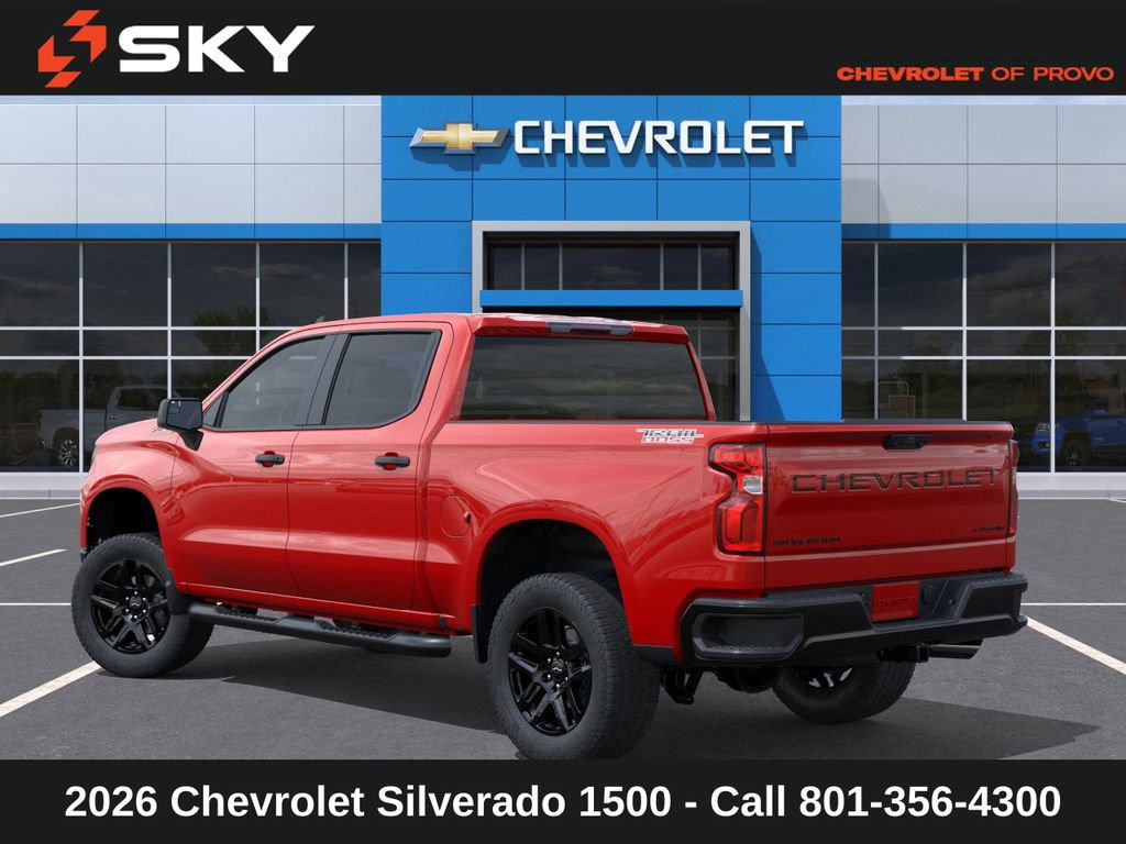 Experience the new Chevrolet Silverado 1500, available now at Sky Chevrolet of Provo! With bold design, advanced technology, and dependable performance, Chevrolet makes every mile more exciting. From Utah Valleyâs city streets to mountain canyon drives, the Silverado 1500 is built to handle it all with confidence. Call 801-356-4300 today to schedule your test drive and see what makes it stand out! Red Hot 2026 Chevrolet Silverado 1500 Custom Trail Boss 4WD 8-Speed Automatic 2.7L I4 Turbocharged DOHC 16V LEV3-SULEV30 310hp 8-Speed Automatic, 4WD, Jet Black Cloth. Price includes: $1000 - Chevrolet Select Market Bonus Cash $1000 - GM Bonus Cash $3000 - Chevrolet Consumer Cash Program $1,000 Down Payment Assistance. Must Finance with GM Financial. $1,500 trade in allowance program for customers that own a 2018 or newer passenger car or truck with less than 80,000 miles and trade in their vehicle towards the purchase of a new 2025-2026 New Chevrolet. Some restrictions may apply. Contact dealer for details.