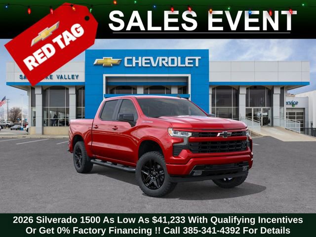 Discover the new Chevrolet Silverado 1500 at Salt Lake Valley Chevrolet in Salt Lake City! With bold design, modern technology, and reliable performance, Chevrolet makes every drive exciting. Whether itâs city streets or canyon roads, the Silverado 1500 is ready for anything. Call us today at 801-969-8221 to schedule a time to see it! --- 2026 Chevrolet Silverado 1500 Radiant Red Tintcoat 2.7L I4 Turbocharged DOHC 16V LEV3-SULEV30 310hp --- Final price excludes tax, tag, title, documentation fees, dealer-installed options, and any market-based pricing adjustments. Financing through GM Financial is required for all discounts to apply. Special finance offers may not be combined with certain factory incentives. While we strive for accuracy, errors may occur please verify all information with a sales representative. For the most accurate pricing, call (801) 969-8221 or visit us in person. Prices and payments are subject to change based on manufacturer incentives. - Price includes - $1000 - Chevrolet Select Market Bonus Cash $1000 - GM Bonus Cash $1250 - Chevrolet Trade Assistance Bonus Cash Program $3000 - Chevrolet Consumer Cash Program - Price includes $1,000 Down Payment Assistance. Must Finance with GM Financial - Price includes $1,500 trade in allowance program for customers that own a 2018 or newer passenger car or truck with less than 80,000 miles and trade in their vehicle towards the purchase of a new 2024-2025 Chevrolet. Some restrictions may apply. Contact dealer for details