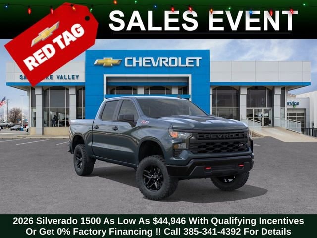 Discover the new Chevrolet Silverado 1500 at Salt Lake Valley Chevrolet in Salt Lake City! With bold design, modern technology, and reliable performance, Chevrolet makes every drive exciting. Whether itâs city streets or canyon roads, the Silverado 1500 is ready for anything. Call us today at 801-969-8221 to schedule a time to see it! --- 2026 Chevrolet Silverado 1500 Cypress Gray EcoTec3 5.3L V8 --- Final price excludes tax, tag, title, documentation fees, dealer-installed options, and any market-based pricing adjustments. Financing through GM Financial is required for all discounts to apply. Special finance offers may not be combined with certain factory incentives. While we strive for accuracy, errors may occur please verify all information with a sales representative. For the most accurate pricing, call (801) 969-8221 or visit us in person. Prices and payments are subject to change based on manufacturer incentives. - Price includes - $1250 - Chevrolet Trade Assistance Bonus Cash Program $1500 - GM Bonus Cash $3250 - Chevrolet Consumer Cash Program - Price includes $1,000 Down Payment Assistance. Must Finance with GM Financial - Price includes $1,500 trade in allowance program for customers that own a 2018 or newer passenger car or truck with less than 80,000 miles and trade in their vehicle towards the purchase of a new 2024-2025 Chevrolet. Some restrictions may apply. Contact dealer for details