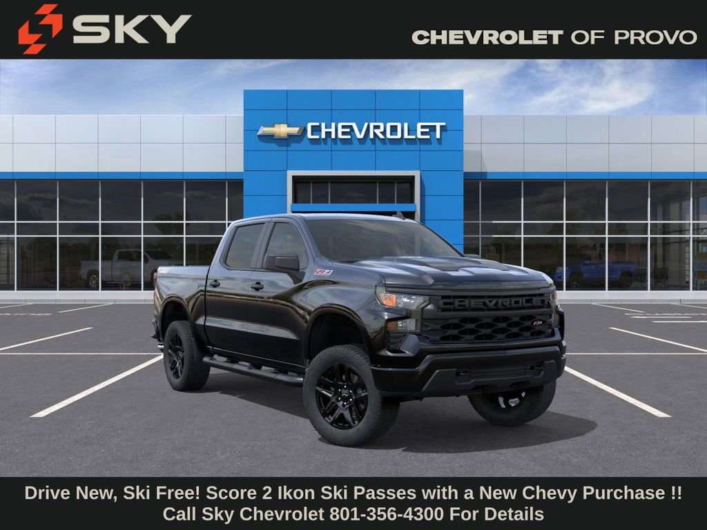 Experience the new Chevrolet Silverado 1500, available now at Sky Chevrolet of Provo! With bold design, advanced technology, and dependable performance, Chevrolet makes every mile more exciting. From Utah Valleyâs city streets to mountain canyon drives, the Silverado 1500 is built to handle it all with confidence. Call 801-356-4300 today to schedule your test drive and see what makes it stand out! Black 2026 Chevrolet Silverado 1500 Custom Trail Boss 4WD 8-Speed Automatic 2.7L I4 Turbocharged DOHC 16V LEV3-SULEV30 310hp 8-Speed Automatic, 4WD, Jet Black Cloth.Recent Arrival! Price includes: $1000 - Chevrolet Select Market Bonus Cash $1000 - GM Bonus Cash $3000 - Chevrolet Consumer Cash Program $1,000 Down Payment Assistance. Must Finance with GM Financial. $1,500 trade in allowance program for customers that own a 2018 or newer passenger car or truck with less than 80,000 miles and trade in their vehicle towards the purchase of a new 2025-2026 New Chevrolet. Some restrictions may apply. Contact dealer for details.