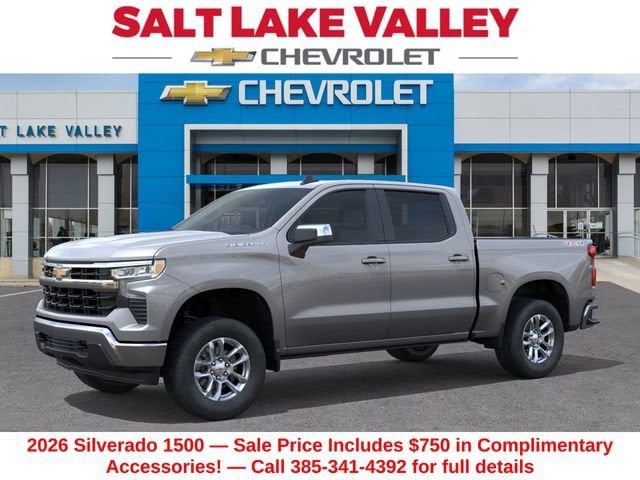 Discover the new Chevrolet Silverado 1500 at Salt Lake Valley Chevrolet in Salt Lake City! With bold design, modern technology, and reliable performance, Chevrolet makes every drive exciting. Whether itâs city streets or canyon roads, the Silverado 1500 is ready for anything. Call us today at 801-969-8221 to schedule a time to see it! --- 2026 Chevrolet Silverado 1500 Sterling Gray Metallic 2.7L I4 Turbocharged DOHC 16V LEV3-SULEV30 310hp --- Final price excludes tax, tag, title, documentation fees, dealer-installed options, and any market-based pricing adjustments. Financing through GM Financial is required for all discounts to apply. Special finance offers may not be combined with certain factory incentives. While we strive for accuracy, errors may occur please verify all information with a sales representative. For the most accurate pricing, call (801) 969-8221 or visit us in person. Prices and payments are subject to change based on manufacturer incentives. - Price includes - $1000 - Chevrolet Select Market Bonus Cash $1000 - GM Bonus Cash $1250 - Chevrolet Trade Assistance Bonus Cash Program $3000 - Chevrolet Consumer Cash Program - Price includes $1,000 Down Payment Assistance. Must Finance with GM Financial - Price includes $1,500 trade in allowance program for customers that own a 2018 or newer passenger car or truck with less than 80,000 miles and trade in their vehicle towards the purchase of a new 2024-2025 Chevrolet. Some restrictions may apply. Contact dealer for details
