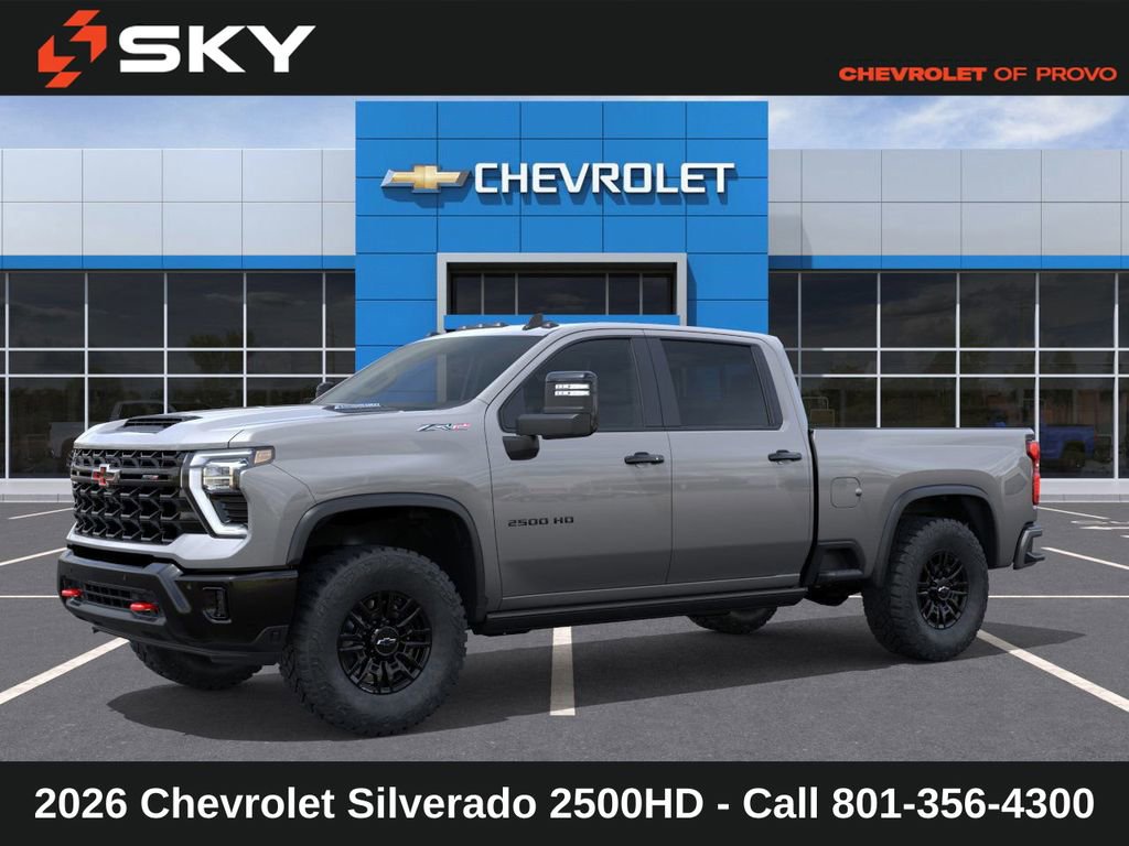 Experience the new Chevrolet Silverado 2500HD, available now at Sky Chevrolet of Provo! With bold design, advanced technology, and dependable performance, Chevrolet makes every mile more exciting. From Utah Valleyâs city streets to mountain canyon drives, the Silverado 2500HD is built to handle it all with confidence. Call 801-356-4300 today to schedule your test drive and see what makes it stand out! Sterling Gray Metallic 2026 Chevrolet Silverado 2500HD ZR2 4WD 10-Speed Automatic Duramax 6.6L V8 Turbodiesel 10-Speed Automatic, 4WD, Jet Black Leather. Price includes: $1000 - Chevrolet Consumer Cash Program $1,000 Down Payment Assistance. Must Finance with GM Financial. $1,500 trade in allowance program for customers that own a 2018 or newer passenger car or truck with less than 80,000 miles and trade in their vehicle towards the purchase of a new 2025-2026 New Chevrolet. Some restrictions may apply. Contact dealer for details.