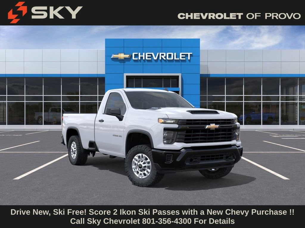 Experience the new Chevrolet Silverado 2500HD, available now at Sky Chevrolet of Provo! With bold design, advanced technology, and dependable performance, Chevrolet makes every mile more exciting. From Utah Valleyâs city streets to mountain canyon drives, the Silverado 2500HD is built to handle it all with confidence. Call 801-356-4300 today to schedule your test drive and see what makes it stand out! Summit White 2026 Chevrolet Silverado 2500HD Work Truck 4WD 10-Speed Automatic 6.6L V8 10-Speed Automatic, 4WD, Jet Black Vinyl. Price includes: $1000 - Chevrolet Consumer Cash Program $1,000 Down Payment Assistance. Must Finance with GM Financial. $1,500 trade in allowance program for customers that own a 2018 or newer passenger car or truck with less than 80,000 miles and trade in their vehicle towards the purchase of a new 2025-2026 New Chevrolet. Some restrictions may apply. Contact dealer for details.