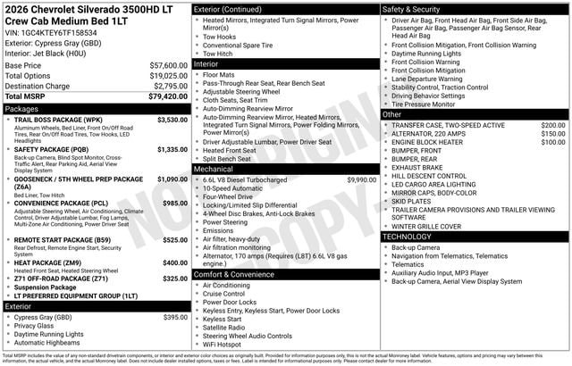 Turn every drive into something special with this Chevrolet Silverado 3500HD from Salt Lake Valley Chevrolet! Designed for comfort, performance, and style, this vehicle comes fully equipped with modern technology and convenience features youâll love. Plus, enjoy a $1,000 finance savings, already included in the sale price, when you finance through one of our trusted lending partners. If youâre shopping for used cars in Salt Lake City, or searching for the perfect SUV, truck, or sedan, this Chevrolet Silverado 3500HD delivers the dependability and value youâre looking for. Itâs the ideal match for your lifestyle - ready for everything from mountain adventures to city commutes. Visit Salt Lake Valley Chevrolet today and see why so many Utah drivers trust us for great deals on quality pre-owned vehicles. Explore our inventory online at www.slvchevy.com or call 801-969-8221 to schedule your test drive today! This impressive vehicle includes Convenience Package (10-Way Power Driver Seat Adjuster with Lumbar, Dual-Zone Automatic Climate Control, Front LED Fog Lamps, LED Cargo Area Lighting, and Manual Tilt-Wheel/Telescoping Steering Column), Gooseneck/5th Wheel Prep Package (Chevytec Spray-on Black Bedliner), Heat Package (Heated Driver and Front Outboard Passenger Seats and Heated Steering Wheel), Preferred Equipment Group 1LT (170 Amp Alternator, 2-Speed Electronic Shift Transfer Case, 4-Way Manual Driver Seat Adjuster, Black Mirror Caps, Bluetooth® For Phone, Chevrolet Connected Access Capable, Color-Keyed Carpeting Floor Covering, Compass Located in Instrument Cluster, Deep-Tinted Glass, Durabed Pickup Bed, EZ Lift Power Lock and Release Tailgate, Front Rubberized Vinyl Floor Mats, Halogen Reflector Headlamps, HD Rear Vision Camera, Keyless Open and Start, OnStar Services Capable, Outside Power-Adjustable Mirrors, Power Door Locks, Power Front Windows with Driver Express Up/Down, Power Front Windows with Passenger Express Down, Power Rear Windows with Express Down, Push Button Start, Rear 60/40 Folding Bench Seat (folds Up), Rear Rubberized-Vinyl Floor Mats, SiriusXM with 360L Trial Subscription, Standard Tailgate, Steering Wheel Audio Controls, Steering Wheel Mounted Electronic Cruise Control, Wi-Fi Hotspot Capable, and Wrapped Steering Wheel), Remote Start Package (Electric Rear-Window Defogger, Remote Vehicle Starter System, and Unauthorized Entry Theft-Deterrent System), Safety Package (Bed View Camera with Two Trailer Camera Provisions, HD Surround Vision, in-Vehicle Trailering App System, Rear Cross Traffic Alert, Trailer Camera Provisions, Trailer Side Blind Zone Alert, and Ultrasonic Front and Rear Park Assist), Suspension Package, Trail Boss Package (Animated LED Projector Headlamps, Auto-Dimming Inside Rear-View Mirror, Black Grille Bar with Chevy Black Bow Tie, Front Frame-Mounted Red Recovery Hooks, High Gloss Black Door Handles, High Gloss Black Front Bumper, High Gloss Black Mirror Caps, High Gloss Black Rear Bumper, Perimeter Lighting, Power-Adjustable Outside Mirrors, and Wheels: 20 High-Gloss Black Painted), Z71 Off-Road Package (Hill Descent Control), 2-Speed Active Transfer Case, 220 Amp Alternator, 4-Way Manual Passenger Seat Adjuster, 4-Wheel Disc Brakes, 6 Speakers, 6-Speaker Audio System Feature, ABS brakes, Air Conditioning, Alloy wheels, AM/FM radio: SiriusXM with 360L, Apple CarPlay/Android Auto, Auto High-beam Headlights, Body-Color Front Bumper, Body-Color Rear Bumper, Brake assist, Bumpers: chrome, Cloth Seat Trim, Compass, Delay-off headlights, Driver door bin, Driver vanity mirror, Dual front impact airbags, Dual front side impact airbags, Electronic Stability Control, Emergency communication system, Engine Block Heater, Exhaust Brake, Front 40/20/40 Split-Bench Seats with Lockable Storage, Front anti-roll bar, Front Center Armrest w/Storage, Front reading lights, Front wheel independent suspension, Fully automatic headlights, Heated door mirrors, Heavy-Duty 80 Amp-Hour Battery, Illuminat