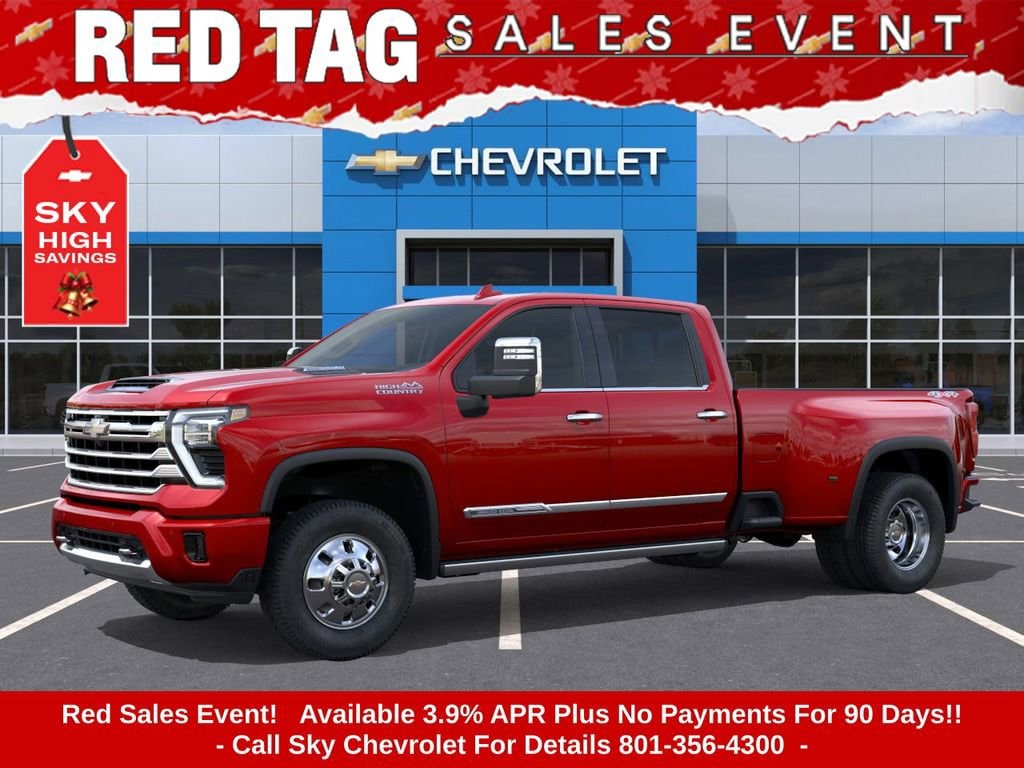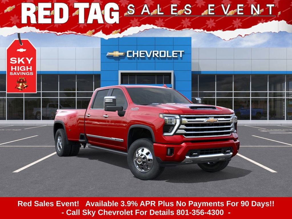 Experience the new Chevrolet Silverado 3500HD, available now at Sky Chevrolet of Provo! With bold design, advanced technology, and dependable performance, Chevrolet makes every mile more exciting. From Utah Valleyâs city streets to mountain canyon drives, the Silverado 3500HD is built to handle it all with confidence. Call 801-356-4300 today to schedule your test drive and see what makes it stand out! Radiant Red Tintcoat 2026 Chevrolet Silverado 3500HD High Country 4WD 10-Speed Automatic Duramax 6.6L V8 Turbodiesel 10-Speed Automatic, 4WD, Jet Black / Umber Leather. Price includes: $1500 - Chevrolet Consumer Cash Program $1,000 Down Payment Assistance. Must Finance with GM Financial. $1,500 trade in allowance program for customers that own a 2018 or newer passenger car or truck with less than 80,000 miles and trade in their vehicle towards the purchase of a new 2025-2026 New Chevrolet. Some restrictions may apply. Contact dealer for details.