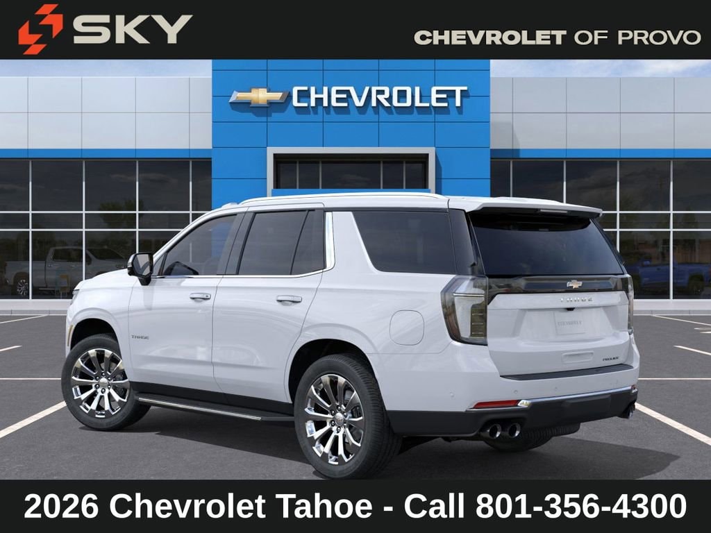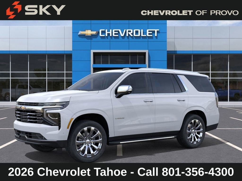 Experience the new Chevrolet Tahoe, available now at Sky Chevrolet of Provo! With bold design, advanced technology, and dependable performance, Chevrolet makes every mile more exciting. From Utah Valleyâs city streets to mountain canyon drives, the Tahoe is built to handle it all with confidence. Call 801-356-4300 today to schedule your test drive and see what makes it stand out! Polar White Tricoat 2026 Chevrolet Tahoe Premier 4WD 10-Speed Automatic with Overdrive EcoTec3 5.3L V8 4WD, Jet Black Leather. $1,000 Down Payment Assistance. Must Finance with GM Financial. $1,500 trade in allowance program for customers that own a 2018 or newer passenger car or truck with less than 80,000 miles and trade in their vehicle towards the purchase of a new 2025-2026 New Chevrolet. Some restrictions may apply. Contact dealer for details.