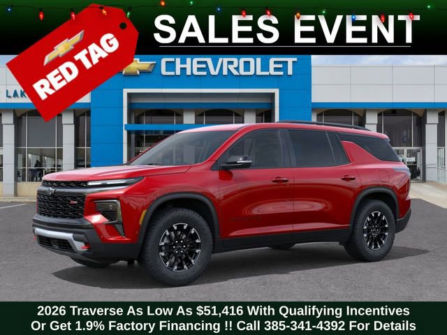 Discover the new Chevrolet Traverse at Salt Lake Valley Chevrolet in Salt Lake City! With bold design, modern technology, and reliable performance, Chevrolet makes every drive exciting. Whether itâs city streets or canyon roads, the Traverse is ready for anything. Call us today at 801-969-8221 to schedule a time to see it! --- 2026 Chevrolet Traverse Radiant Red Tintcoat 2.5L DOHC --- Final price excludes tax, tag, title, documentation fees, dealer-installed options, and any market-based pricing adjustments. Financing through GM Financial is required for all discounts to apply. Special finance offers may not be combined with certain factory incentives. While we strive for accuracy, errors may occur please verify all information with a sales representative. For the most accurate pricing, call (801) 969-8221 or visit us in person. Prices and payments are subject to change based on manufacturer incentives. - Price includes $1,000 Down Payment Assistance. Must Finance with GM Financial - Price includes $1,500 trade in allowance program for customers that own a 2018 or newer passenger car or truck with less than 80,000 miles and trade in their vehicle towards the purchase of a new 2024-2025 Chevrolet. Some restrictions may apply. Contact dealer for details