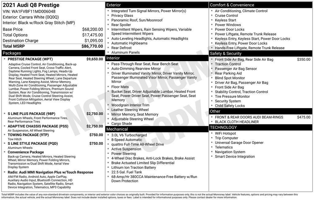2021 Audi Q8 55 Prestige quattro Recent Arrival!