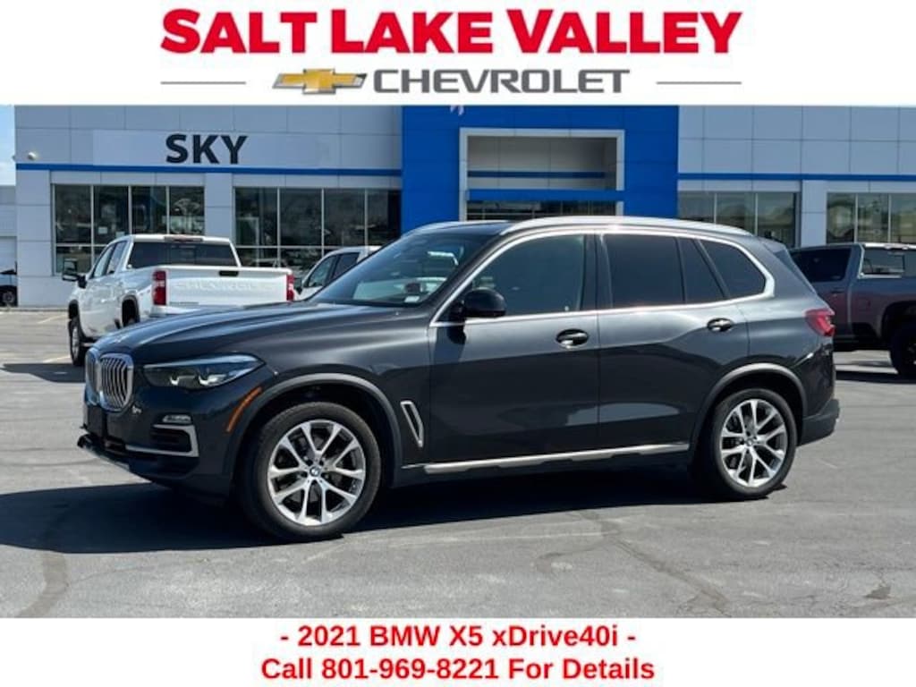 This BMW X5 is packed with all your favorite features and includes a $1,000 finance savings, already included into the sale price, when you finance through one of our trusted lending partners! Explore more quality vehicles at www.slvchevrolet.com or call 801-969-8221 today! Enjoy the great options on this X5 like Connected Package Pro, Driving Assistance Professional Package (Active Driving Assistant Pro and Extended Traffic Jam Assistant), Parking Assistance Package (Active Park Distance Control, Drive Recorder, Parking Assistant Plus, Rear-View Camera, and Surround View w/3D View), Premium Package 3 (4-Zone Automatic Climate Control, Gesture Control, Head-Up Display, and Remote Engine Start), 10 Speakers, 4-Wheel Disc Brakes, ABS brakes, Air Conditioning, Alloy wheels, AM/FM radio: SiriusXM with 360L, AM/FM Stereo, Apple CarPlay & Android Auto Compatibility, Apple CarPlay Compatibility, Auto High-beam Headlights, Auto tilt-away steering wheel, Auto-dimming door mirrors, Auto-dimming Rear-View mirror, Automatic temperature control, Axle Ratio: 3.385, BMW Assist eCall, BMW TeleServices, Brake assist, Bumpers: body-color, Compass, ConnectedDrive Services, Delay-off headlights, Driver door bin, Driver vanity mirror, Dual front impact airbags, Dual front side impact airbags, Electronic Stability Control, Emergency communication system: BMW Assist eCall, Exterior Parking Camera Rear, Four wheel independent suspension, Front & Rear Heated Seats, Front anti-roll bar, Front Bucket Seats, Front Center Armrest, Front dual zone A/C, Front fog lights, Front reading lights, Fully automatic headlights, Garage door transmitter, Genuine wood console insert, Genuine wood dashboard insert, Genuine wood door panel insert, Head restraints memory, Heated door mirrors, Heated Front Seats, Heated front seats, Heated Front Seats w/Armrests & Steering Wheel, Hi-Fi Sound System, Illuminated entry, Knee airbag, Leather Shift Knob, Leather steering wheel, Live Cockpit Pro w/Navigation, Low tire pressure warning, Lumbar Support, Memory seat, Navigation System, Occupant sensing airbag, Outside temperature display, Overhead airbag, Panic alarm, Passenger door bin, Passenger vanity mirror, Power adjustable front head restraints, Power door mirrors, Power driver seat, Power Front Seats, Power moonroof, Power passenger seat, Power steering, Power windows, Radio data system, Rain sensing wipers, Rear air conditioning, Rear anti-roll bar, Rear Manual Side Window Shades, Rear reading lights, Rear seat center armrest, Rear window defroster, Rear window wiper, Remote keyless entry, Roof rack: rails only, Security system, SensaTec Upholstery, SiriusXM Satellite Radio w/360L, Speed control, Speed-sensing steering, Speed-Sensitive Wipers, Split folding rear seat, Spoiler, Sport Seats, Sport steering wheel, Steering wheel memory, Steering wheel mounted audio controls, Tachometer, Telescoping steering wheel, Tilt steering wheel, Traction control, Trailer Hitch, Trip computer, Turn signal indicator mirrors, Variably intermittent wipers, Wheels: 19 x 9 V-Spoke (Style 734), and Wheels: 20 x 9 V-Spoke (Style 738).Clean CARFAX.