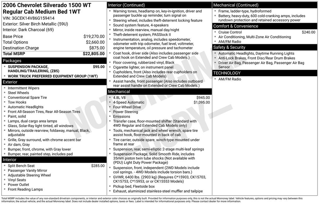 Vortec 4.8L V8 SFI, 4-Speed Automatic with Overdrive, 4WD.