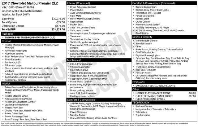 Turn every drive into something special with this Chevrolet Malibu from Salt Lake Valley Chevrolet! Designed for comfort, performance, and style, this vehicle comes fully equipped with modern technology and convenience features youâll love. Plus, enjoy a $1,000 finance savings, already included in the sale price, when you finance through one of our trusted lending partners. If youâre shopping for used cars in Salt Lake City, or searching for the perfect SUV, truck, or sedan, this Chevrolet Malibu delivers the dependability and value youâre looking for. Itâs the ideal match for your lifestyle - ready for everything from mountain adventures to city commutes. Visit Salt Lake Valley Chevrolet today and see why so many Utah drivers trust us for great deals on quality pre-owned vehicles. Explore our inventory online at www.slvchevy.com or call 801-969-8221 to schedule your test drive today! This impressive vehicle includes Preferred Equipment Group 2LZ, 18 Aluminum Wheels, 4-Wheel Disc Brakes, 6-Way Power Front Passenger Seat Adjuster, 8-Way Power Driver Seat Adjuster, 9 Speakers, ABS brakes, Air Conditioning, Alloy wheels, AM/FM radio: SiriusXM, Apple CarPlay/Android Auto, Auto-dimming Rear-View mirror, Automatic temperature control, Brake assist, Bumpers: body-color, Compass, Delay-off headlights, Driver door bin, Driver Memory, Driver vanity mirror, Dual front impact airbags, Dual front side impact airbags, Electronic Stability Control, Emergency communication system, Exterior Parking Camera Rear, Four wheel independent suspension, Front anti-roll bar, Front Bucket Seats, Front Center Armrest w/Storage, Front dual zone A/C, Front License Plate Bracket, Front Passenger Power Lumbar Seat Adjuster, Front reading lights, Fully automatic headlights, Heated door mirrors, Heated Driver & Front Passenger Seats, Heated front seats, Heated steering wheel, Illuminated entry, Knee airbag, Leather Shift Knob, Low tire pressure warning, Memory seat, Navigation System, Occupant sensing airbag, Outside temperature display, Overhead airbag, Overhead console, Panic alarm, Passenger door bin, Passenger vanity mirror, Perforated Leather-Appointed Seat Trim, Power door mirrors, Power Driver Lumbar Control Seat Adjuster, Power driver seat, Power passenger seat, Power steering, Power windows, Radio data system, Radio: Chevrolet MyLink AM/FM Stereo w/Navigation, Rear anti-roll bar, Rear reading lights, Rear seat center armrest, Rear side impact airbag, Rear window defroster, Remote keyless entry, Security system, SiriusXM Satellite Radio, Speed control, Split folding rear seat, Steering wheel mounted audio controls, Tachometer, Telescoping steering wheel, Tilt steering wheel, Traction control, Trip computer, Turn signal indicator mirrors, Variably intermittent wipers, Ventilated Driver & Front Passenger Seats, and Ventilated front seats, offering everything you need for your next adventure.