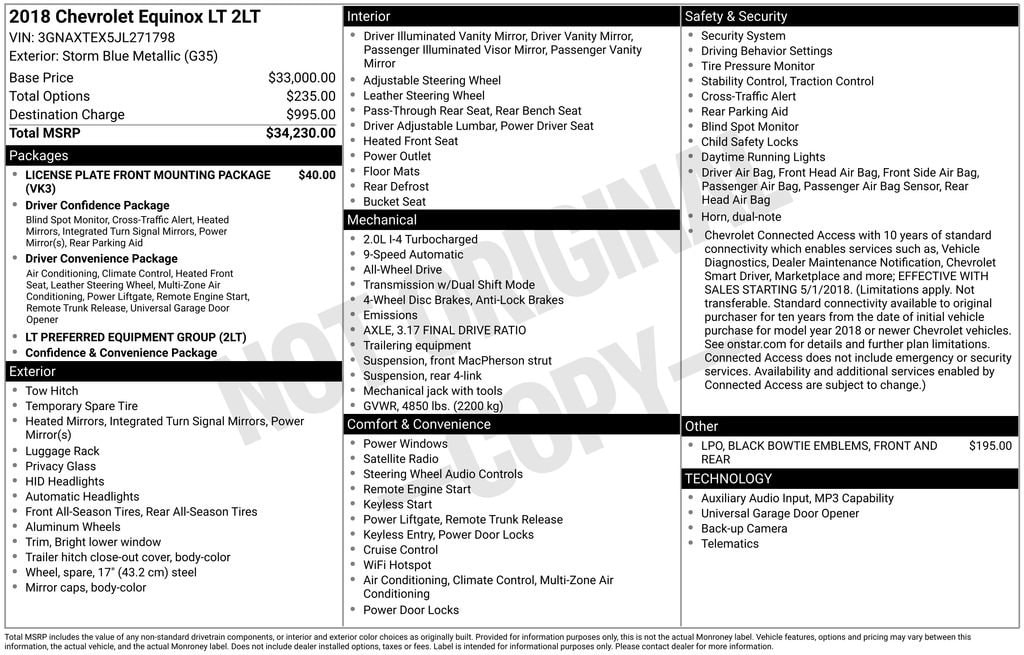 Storm Blue Metallic 2018 Chevrolet Equinox LT AWD 9-Speed Automatic with Overdrive 2.0L Turbocharged AWD.Recent Arrival! Odometer is 26006 miles below market average! 22/28 City/Highway MPGAwards:* JD Power Automotive Performance, Execution and Layout (APEAL) Study * 2018 KBB.com 10 Best SUVs Under $25,000 * 2018 KBB.com Best Family Cars * 2018 KBB.com 10 Most Awarded BrandsCheck out our 5 Star Google Reviews! Drive a little save a lot. Sale Price Includes $1,000 Finance Savings. Contact Dealer For Details.