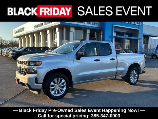 Turn every drive into something special with this Chevrolet Silverado 1500 from Salt Lake Valley Chevrolet! Designed for comfort, performance, and style, this vehicle comes fully equipped with modern technology and convenience features youâll love. Plus, enjoy a $1,000 finance savings, already included in the sale price, when you finance through one of our trusted lending partners. If youâre shopping for used cars in Salt Lake City, or searching for the perfect SUV, truck, or sedan, this Chevrolet Silverado 1500 delivers the dependability and value youâre looking for. Itâs the ideal match for your lifestyle - ready for everything from mountain adventures to city commutes. Visit Salt Lake Valley Chevrolet today and see why so many Utah drivers trust us for great deals on quality pre-owned vehicles. Explore our inventory online at www.slvchevy.com or call 801-969-8221 to schedule your test drive today! This impressive vehicle includes Custom Convenience Package (Electric Rear-Window Defogger, EZ Lift Power Lock & Release Tailgate, LED Cargo Area Lighting, Remote Vehicle Starter System, and Theft Deterrent System (Unauthorized Entry)), Custom Value Package, Infotainment Package (4G LTE Wi-Fi Hot Spot Capable, Chevrolet Connected Access Capable, Compass, OnStar & Chevrolet Connected Services Capable, and SiriusXM Radio), Preferred Equipment Group 1CX (170 Amps Alternator, 3.5 Diagonal Monochromatic Display, Bluetooth® For Phone, Body Color Grille, Color-Keyed Carpeting Floor Covering, Deep-Tinted Glass, Front Frame-Mounted Black Recovery Hooks, Front Rubberized Vinyl Floor Mats, Locking Tailgate, Manual Tilt-Wheel Steering Column, Power Door Locks, Power Front Windows w/Driver Express Up/Down, Power Front Windows w/Passenger Express Down, Power Rear Windows w/Express Down, Rear 60/40 Folding Bench Seat (Folds Up), Rear Rubberized-Vinyl Floor Mats, Remote Keyless Entry, and Steering Wheel Mounted Electronic Cruise Control), Trailering Package (Hitch Guidance), 120-Volt Bed Mounted Power Outlet, 120-Volt Instrument Panel Power Outlet, 220 Amps Alternator, 3.42 Rear Axle Ratio, 4-Wheel Disc Brakes, 40/20/40 Front Split Bench Seat, 6 Speakers, ABS brakes, Air Conditioning, Alloy wheels, Apple CarPlay/Android Auto, Automatic Stop/Start, Brake assist, Bumpers: body-color, Cloth Seat Trim, Delay-off headlights, Driver door bin, Driver vanity mirror, Dual front impact airbags, Dual front side impact airbags, Electronic Stability Control, Exterior Parking Camera Rear, Front 40/20/40 Split-Bench Seat, Front anti-roll bar, Front Center Armrest, Front License Plate Kit, Front reading lights, Front wheel independent suspension, Fully automatic headlights, Heated door mirrors, Heavy Duty Suspension, Heavy-Duty Rear Locking Differential, Illuminated entry, Low tire pressure warning, Occupant sensing airbag, Outside temperature display, Overhead airbag, Overhead console, Panic alarm, Passenger door bin, Passenger vanity mirror, Polished Exhaust Tip, Power door mirrors, Power steering, Power windows, Radio data system, Radio: Chevrolet Infotainment 3 System, Rear reading lights, Rear step bumper, Remote keyless entry, Single-Zone Manual/Semi-Automatic Air Conditioning, Speed control, Speed-sensing steering, Split folding rear seat, Tachometer, Tilt steering wheel, Traction control, Trip computer, Variably intermittent wipers, Voltmeter, and Wheels: 20 x 9 Bright Silver Painted Aluminum, offering everything you need for your next adventure.CARFAX One-Owner.