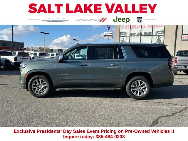Get ready to hit the road in this Chevrolet Suburban, a standout choice for drivers looking for reliability, performance, and style! This impressive vehicle is packed with premium features designed to make every drive more enjoyable. Plus, youâll enjoy a $1,000 finance savings, already included in the sale price, when you finance through one of our trusted lending partners. Whether youâre searching for used cars in Salt Lake City, a dependable SUV, or a powerful truck, this Chevrolet Suburban delivers everything you need and more. Visit Salt Lake Valley Chrysler Dodge Jeep Ram today to test drive or explore our entire selection of quality pre-owned vehicles. Donât wait - shop online at www.slvcdjr.com or call 801-484-8755 to learn more! This amazing vehicle comes loaded with options like License Plate Front Mounting Package, Preferred Equipment Group 1LZ (1st & 2nd Row Color-Keyed Carpeted Floor Mats, 2-Speed Active Electronic AutoTrac Transfer Case, 3rd Row 60/40 Power-Folding Split-Bench, Auto-Dimming Inside Rear-View Mirror, Bose 10-Speaker Surround w/CenterPoint, Bright Front & Rear Door Sill Plates, Chrome Door Handles w/Body-Color Strip, Chrome Mirror Caps, Color-Keyed Carpeting Floor Covering, Driver & Front Outboard Passenger Airbags, Dual Exhaust System, Enhanced Driver Information Center, Floor Console, Hands-Free Rear Power Programmable Liftgate, Heated & Ventilated Driver & Front Passenger Seats, Heated 2nd Row Outboard Seats, Heated Driver & Front Passenger Seats, Heated Steering Wheel, Hill Descent Control, Infotainment Display, Lane Change Alert w/Side Blind Zone Alert, LED Daytime Running Lamps, Memory Settings, Outside Heated Power-Adjustable Mirrors, Power Release 2nd Row Bucket Seats, Power Tilt & Telescopic Steering Column, Rear Cross Traffic Alert, Remote Start, Safety Alert Seat, SiriusXM Radio w/360L, Universal Home Remote, Wireless Charging, and Wrapped Steering Wheel), 10 Speakers, 20" x 9" Polished Aluminum Wheels, 3.23 Rear Axle Ratio, 3rd row seats: split-bench, 4-Wheel Disc Brakes, ABS brakes, Adaptive suspension, Air Conditioning, Alloy wheels, AM/FM radio: SiriusXM with 360L, Apple CarPlay/Android Auto, Auto High-beam Headlights, Auto-dimming door mirrors, Auto-dimming Rear-View mirror, Auto-leveling suspension, Automatic temperature control, Brake assist, Bumpers: body-color, Compass, Delay-off headlights, Deleted 3 Years of Remote Access, Driver door bin, Driver vanity mirror, Dual front impact airbags, Dual front side impact airbags, Electronic Stability Control, Emergency communication system: OnStar and Chevrolet connected services capable, Four wheel independent suspension, Front anti-roll bar, Front Bucket Seats, Front Center Armrest, Front dual zone A/C, Front reading lights, Fully automatic headlights, Garage door transmitter, Heated door mirrors, Heated front seats, Heated rear seats, Heated steering wheel, Illuminated entry, Low tire pressure warning, Magnetic Ride Control Suspension, Memory seat, Navigation System, Occupant sensing airbag, Outside temperature display, Overhead airbag, Overhead console, Panic alarm, Passenger door bin, Passenger vanity mirror, Perforated Leather Seating Surfaces, Power door mirrors, Power driver seat, Power Liftgate, Power passenger seat, Power steering, Power windows, Premium audio system: Chevrolet Infotainment 3 Premium, Radio: Chevrolet Infotainment 3 Premium System, Rain sensing wipers, Rear air conditioning, Rear anti-roll bar, Rear reading lights, Rear window defroster, Rear window wiper, Remote keyless entry, Roof rack: rails only, Security system, Speed control, Speed-sensing steering, Split folding rear seat, Spoiler, Steering wheel memory, Steering wheel mounted audio controls, Tachometer, Telescoping steering wheel, Tilt steering wheel, Traction control, Trip computer, Turn signal indicator mirrors, Variably intermittent wipers, Ventilated front seats, and Voltmeter, making it the perfect choice for your next adventure.