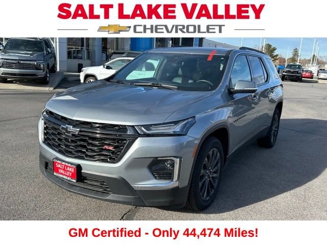 Turn every drive into something special with this Chevrolet Traverse from Salt Lake Valley Chevrolet! Designed for comfort, performance, and style, this vehicle comes fully equipped with modern technology and convenience features youâll love. Plus, enjoy a $1,000 finance savings, already included in the sale price, when you finance through one of our trusted lending partners. If youâre shopping for used cars in Salt Lake City, or searching for the perfect SUV, truck, or sedan, this Chevrolet Traverse delivers the dependability and value youâre looking for. Itâs the ideal match for your lifestyle - ready for everything from mountain adventures to city commutes. Visit Salt Lake Valley Chevrolet today and see why so many Utah drivers trust us for great deals on quality pre-owned vehicles. Explore our inventory online at www.slvchevy.com or call 801-969-8221 to schedule your test drive today! This impressive vehicle includes Front License Plate Bracket Mounting Package, Interior Protection Package (LPO) (1st & 2nd Row All-Weather Floor Mats, 3rd Row All-Weather Floor Mats, and All-Weather Cargo Mat (LPO)), Preferred Equipment Group 2LT (Heated Driver & Front Passenger Seats), Trailering Equipment (Heavy-Duty Cooling System, Hitch Guidance w/Hitch View, and Trailering Assist Guidelines), 10 Speakers, 3.49 Axle Ratio, 3rd row seats: split-bench, 4-Wheel Disc Brakes, 6-Way Power Front Passenger Seat, 8-Way Power Driver Seat Adjuster, ABS brakes, Air Conditioning, Alloy wheels, AM/FM radio: SiriusXM with 360L, Apple CarPlay/Android Auto, Auto High-beam Headlights, Auto-dimming Rear-View mirror, Automatic temperature control, Black Roof Rack Cross Rails, Bose Premium 10-Speaker Audio System Feature, Brake assist, Bumpers: body-color, Compass, Delay-off headlights, Driver door bin, Driver vanity mirror, Dual front impact airbags, Dual front side impact airbags, Electronic Stability Control, Emergency communication system, Exterior Parking Camera Rear, Four wheel independent suspension, Front anti-roll bar, Front Bucket Seats, Front Center Armrest, Front dual zone A/C, Front Passenger 2-Way Power Lumbar, Front reading lights, Fully automatic headlights, Garage door transmitter, Heated door mirrors, Heated front seats, Heated steering wheel, Illuminated entry, Leather steering wheel, Low tire pressure warning, Navigation System, Not Equipped w/Rear Park Assist (060), Occupant sensing airbag, Outside temperature display, Overhead airbag, Overhead console, Panic alarm, Passenger door bin, Passenger vanity mirror, Perforated Leather-Appointed Seat Trim, Power door mirrors, Power Driver Lumbar Control, Power driver seat, Power Liftgate, Power passenger seat, Power steering, Power windows, Premium audio system: Chevrolet Infotainment 3 Plus, Radio data system, Radio: Chevrolet Infotainment 3 Plus System w/Navi, Rear air conditioning, Rear anti-roll bar, Rear reading lights, Rear window defroster, Rear window wiper, Remote keyless entry, Security system, SiriusXM w/360L, Speed control, Speed-sensing steering, Spoiler, Steering wheel mounted audio controls, Tachometer, Telescoping steering wheel, Tilt steering wheel, Traction control, Trip computer, Turn signal indicator mirrors, Variably intermittent wipers, Voltmeter, and Wheels: 20 Dark Aluminum, offering everything you need for your next adventure.