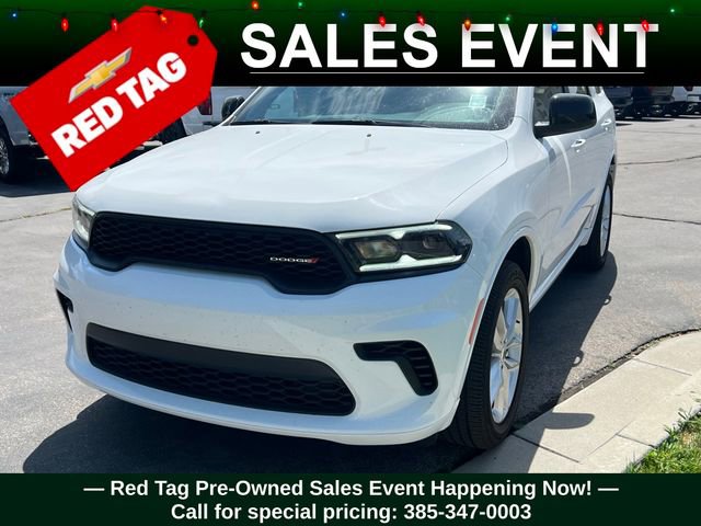 Turn every drive into something special with this Dodge Durango from Salt Lake Valley Chevrolet! Designed for comfort, performance, and style, this vehicle comes fully equipped with modern technology and convenience features youâll love. Plus, enjoy a $1,000 finance savings, already included in the sale price, when you finance through one of our trusted lending partners. If youâre shopping for used cars in Salt Lake City, or searching for the perfect SUV, truck, or sedan, this Dodge Durango delivers the dependability and value youâre looking for. Itâs the ideal match for your lifestyle - ready for everything from mountain adventures to city commutes. Visit Salt Lake Valley Chevrolet today and see why so many Utah drivers trust us for great deals on quality pre-owned vehicles. Explore our inventory online at www.slvchevy.com or call 801-969-8221 to schedule your test drive today! This impressive vehicle includes Quick Order Package 2BD GT, 3.45 Rear Axle Ratio, 3rd row seats: split-bench, 4-Wheel Disc Brakes, 6 Speakers, ABS brakes, Air Conditioning, Alloy wheels, AM/FM radio: SiriusXM, Apple CarPlay, Apple CarPlay/Android Auto, Auto-dimming Rear-View mirror, Automatic temperature control, Brake assist, Bumpers: body-color, Cloth Bucket Seats w/Shift Insert, Compass, Delay-off headlights, Driver door bin, Driver vanity mirror, Dual front impact airbags, Dual front side impact airbags, Electronic Stability Control, Exterior Mirrors w/Heating Element, Four wheel independent suspension, Front anti-roll bar, Front Bucket Seats, Front Center Armrest w/Storage, Front dual zone A/C, Front License Plate Bracket, Front reading lights, Fully automatic headlights, Garage door transmitter, Gloss Black Exterior Mirrors, Google Android Auto, GPS Antenna Input, Heated door mirrors, Heated front seats, Heated steering wheel, Illuminated entry, Integrated Center Stack Radio, Integrated Voice Command w/Bluetooth, Knee airbag, Leather steering wheel, Low tire pressure warning, Occupant sensing airbag, Outside temperature display, Overhead airbag, Overhead console, Panic alarm, ParkView Rear Back-Up Camera, Passenger door bin, Passenger vanity mirror, Power door mirrors, Power driver seat, Power Liftgate, Power steering, Power windows, Radio data system, Radio: Uconnect 4 w/8.4 Display, Rear air conditioning, Rear anti-roll bar, Rear reading lights, Rear seat center armrest, Rear window defroster, Rear window wiper, Red Accent Stitching, Remote keyless entry, Speed control, Speed-sensing steering, Speed-Sensitive Wipers, Split folding rear seat, Spoiler, Sport steering wheel, Steering wheel mounted audio controls, Tachometer, Telescoping steering wheel, Tilt steering wheel, Traction control, Trip computer, USB Host Flip, Variably intermittent wipers, Voltmeter, and Wheels: 20 x 8.0 Fine Silver, offering everything you need for your next adventure.