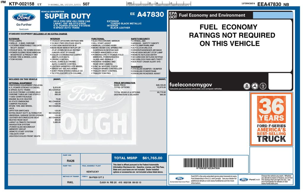 2014 Ford F-350SD 4WD TorqShift 6-Speed Automatic with Overdrive Power Stroke 6.7L V8 DI 32V OHV Turbodiesel 4WD.