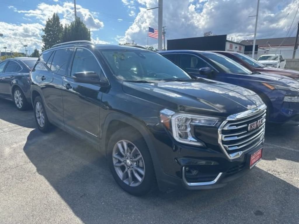 This GMC Terrain is packed with all your favorite features and includes a $1,000 finance savings, already included into the sale price, when you finance through one of our trusted lending partners! Explore more quality vehicles at www.slvchevrolet.com or call 801-969-8221 today! Enjoy the great options on this Terrain like License Plate Front Mounting Package, Preferred Equipment Group 4SA, 2 USB Data Ports, 2 USB Data Ports w/SD Card Reader, 3.47 Axle Ratio, 4-Wheel Disc Brakes, 6 Speakers, 6-Speaker Audio System Feature, 6-Way Power Front Passenger Seat, 8-Way Power Driver Seat Adjuster, ABS brakes, Air Conditioning, Alloy wheels, AM/FM radio: SiriusXM, Auto High-beam Headlights, Auto-dimming Rear-View mirror, Automatic temperature control, Bluetooth® For Phone, Brake assist, Bumpers: body-color, Compass, Delay-off headlights, Driver & Front Passenger Heated Seats, Driver door bin, Driver vanity mirror, Dual front impact airbags, Dual front side impact airbags, Electronic Stability Control, Emergency communication system: OnStar and GMC connected services capable, Four wheel independent suspension, Front anti-roll bar, Front Bucket Seats, Front Center Armrest, Front dual zone A/C, Front fog lights, Front Passenger 2-Way Power Lumbar, Front reading lights, Fully automatic headlights, Garage door transmitter, Heated door mirrors, Heated front seats, Heated steering wheel, Illuminated entry, Lane Departure Warning System, Low tire pressure warning, Memory seat, Occupant sensing airbag, Outside temperature display, Overhead airbag, Overhead console, Panic alarm, Passenger door bin, Passenger vanity mirror, Perforated Leather-Appointed Seat Trim, Power door mirrors, Power Driver Lumbar Control, Power driver seat, Power Liftgate, Power passenger seat, Power steering, Power windows, Radio data system, Radio: GMC Infotainment Audio System w/8 Display, Rear anti-roll bar, Rear seat center armrest, Rear window defroster, Rear window wiper, Remote keyless entry, Roof rack: rails only, Security system, SiriusXM Radio, Speed control, Speed-sensing steering, Split folding rear seat, Spoiler, Steering wheel mounted audio controls, Tachometer, Telescoping steering wheel, Tilt steering wheel, Traction control, Trip computer, Turn signal indicator mirrors, Variably intermittent wipers, Wheels: 18 x 7 Silver Painted Aluminum, and Wireless Apple CarPlay/Wireless Android Auto.24/28 City/Highway MPGCARFAX One-Owner.Clean CARFAX.