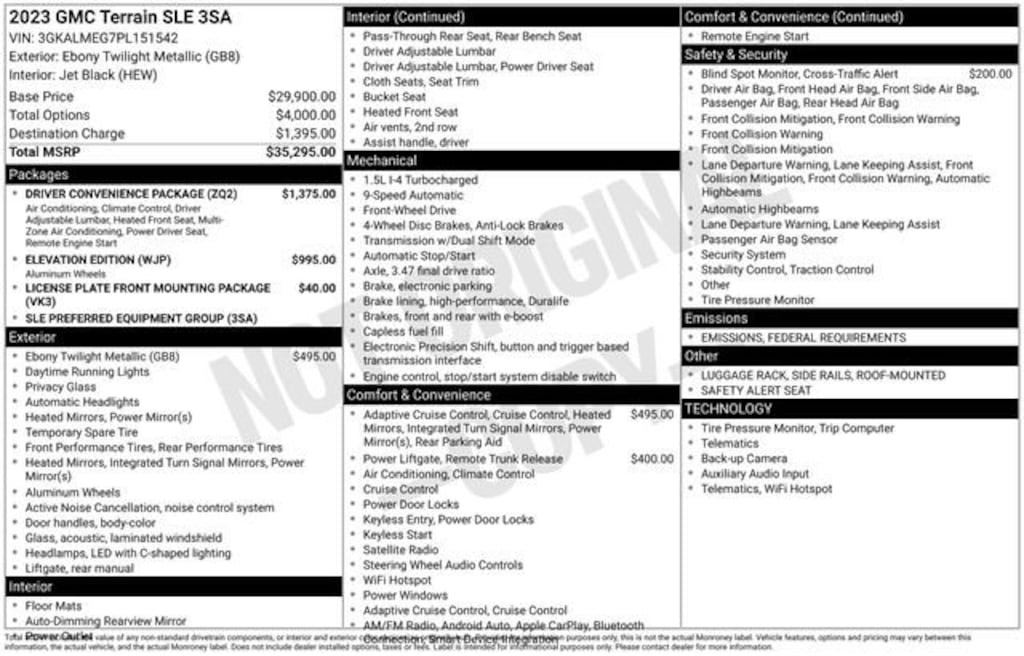 Turn every drive into something special with this GMC Terrain from Salt Lake Valley Chevrolet! Designed for comfort, performance, and style, this vehicle comes fully equipped with modern technology and convenience features youâll love. Plus, enjoy a $1,000 finance savings, already included in the sale price, when you finance through one of our trusted lending partners. If youâre shopping for used cars in Salt Lake City, or searching for the perfect SUV, truck, or sedan, this GMC Terrain delivers the dependability and value youâre looking for. Itâs the ideal match for your lifestyle - ready for everything from mountain adventures to city commutes. Visit Salt Lake Valley Chevrolet today and see why so many Utah drivers trust us for great deals on quality pre-owned vehicles. Explore our inventory online at www.slvchevy.com or call 801-969-8221 to schedule your test drive today! This impressive vehicle includes Driver Convenience Package (8-Way Power Driver Seat Adjuster, Driver & Front Passenger Heated Seats, Dual-Zone Automatic Climate Control, Power Driver Lumbar Control, Remote Start, and Roof-Mounted Luggage Rack Side Rails), Elevation Edition (Black GMC Center Caps w/Red GMC Lettering, Black Mirror Caps, Darkened Front Grille, and Wheels: 19 Gloss Black Aluminum), License Plate Front Mounting Package, Preferred Equipment Group 3SA, Side Blind Zone & Rear Cross Traffic (Lane Change Alert w/Side Blind Zone Alert and Rear Cross-Traffic Alert), Terrain Pro Safety Plus (Adaptive Cruise Control, Outside Heated Power-Adjustable Mirrors, Rear Park Assist, and Safety Alert Seat), 2 USB Data Ports w/Auxiliary Input Jack, 3.47 Axle Ratio, 4-Way Manual Driver's Seat, 4-Way Manual Front Passenger Seat, 4-Wheel Disc Brakes, 4.2 Multi-Color Driver Information Screen, 6 Speakers, 6-Speaker Audio System Feature, ABS brakes, Air Conditioning, Alloy wheels, AM/FM radio: SiriusXM, Auto High-beam Headlights, Auto-dimming Rear-View mirror, Automatic temperature control, Bluetooth® For Phone, Brake assist, Bumpers: body-color, Compass, Delay-off headlights, Driver door bin, Driver vanity mirror, Dual front impact airbags, Dual front side impact airbags, Electronic Stability Control, Emergency communication system: OnStar and GMC connected services capable, Four wheel independent suspension, Front anti-roll bar, Front Bucket Seats, Front Center Armrest, Front reading lights, Fully automatic headlights, Heated door mirrors, Illuminated entry, Low tire pressure warning, Occupant sensing airbag, Outside temperature display, Overhead airbag, Overhead console, Panic alarm, Passenger door bin, Passenger vanity mirror, Power door mirrors, Power Programmable Rear Liftgate, Power steering, Power windows, Premium Cloth Seat Trim, Radio data system, Radio: GMC Infotainment Audio System w/7 Display, Rear anti-roll bar, Rear seat center armrest, Rear window defroster, Rear window wiper, Remote keyless entry, Security system, SiriusXM Radio, Speed control, Speed-sensing steering, Split folding rear seat, Spoiler, Steering wheel mounted audio controls, Tachometer, Telescoping steering wheel, Tilt steering wheel, Traction control, Trip computer, Variably intermittent wipers, Wheels: 17 x 7 Silver Painted Aluminum, and Wireless Apple CarPlay/Wireless Android Auto, offering everything you need for your next adventure.