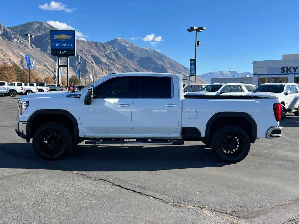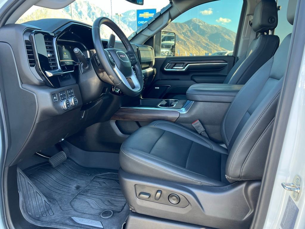 Summit White 2024 GMC Sierra 2500HD SLT 4WD 10-Speed Automatic Duramax 6.6L V8 Turbodiesel 10-Speed Automatic, 4WD, Jet Black Leather.
