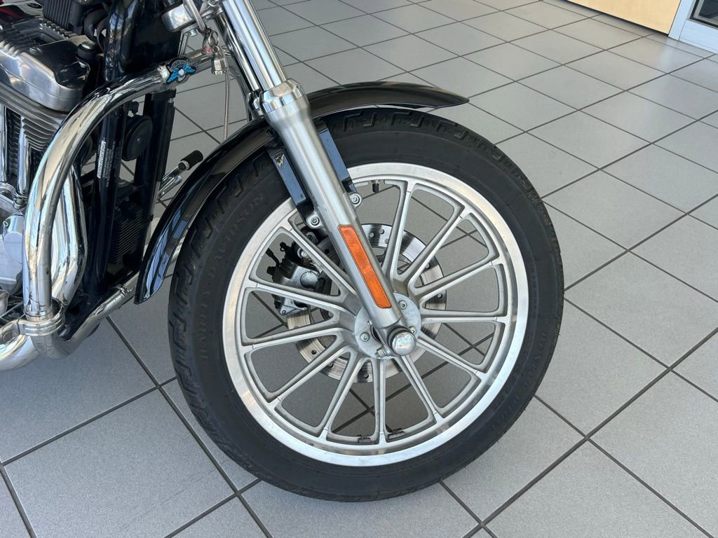 Designed for a comfortable ride, this Sportster has a 5-speed manual transmission, a reliable belt primary drive, and features a low seat height, making it accessible for a wide range of riders. The bike is equipped with single disc brakes on both the front and rear for confident stopping power.