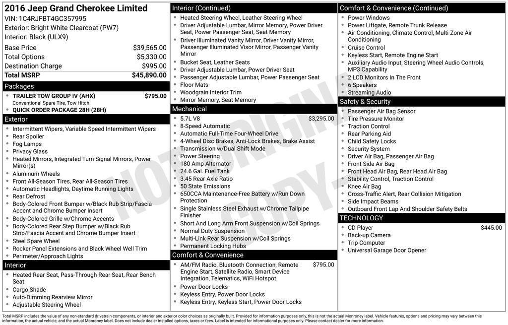 Bright White Clearcoat 2016 Jeep Grand Cherokee Limited 4WD 8-Speed Automatic 5.7L V8 Multi Displacement VVT 4WD.