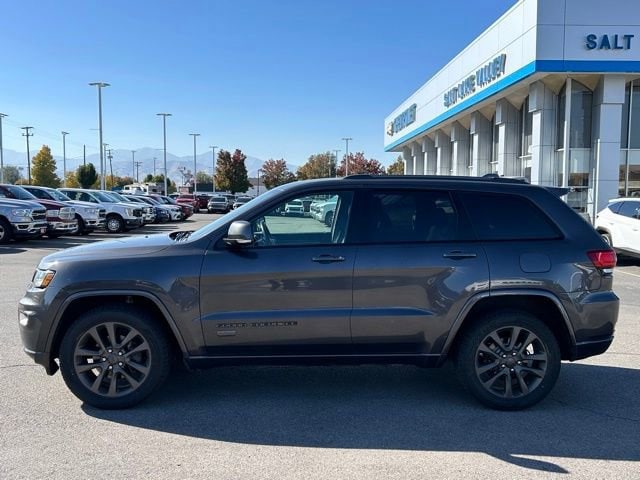 2021 Jeep Grand Cherokee 75th Anniversary Edition Bold. Refined. Ready.Celebrate Jeep heritage in style with this exclusive 75th Anniversary Edition rugged capability meets premium luxury.$1,000 finance savings already applied to the sale price when you finance through our trusted partners!Loaded with leather-trimmed seats, heated front and rear seats, power sunroof, 8.4 Uconnect touchscreen, Blind-Spot Monitoring, and signature bronze 20 wheels.Adventure never looked this good.Salt Lake Valley Chevrolet Where value drives excitement.This Jeep Grand Cherokee is packed with all your favorite features and includes a $1,000 finance savings, already included into the sale price, when you finance through one of our trusted lending partners! Explore more quality vehicles at www.slvchevrolet.com or call 801-969-8221 today! Enjoy the great options on this Grand Cherokee like Jeep 75th Anniversary Package, Quick Order Package 23K 75th Anniversary (DISC) (#2 Seat Foam Cushion, 1-Year SiriusXM Radio Service, 75th Anniversary Badge, 8.4 Touchscreen Display, Accent Color Roof Rails, Auto-Dimming Exterior Passenger Mirror, Blind Spot & Cross Path Detection, Body Color Claddings, Body Color Door Handles, Body Color Exterior Mirrors, Body Color Fascias, Body Color Grille w/Bronze Accent, Body Color Shark Fin Antenna, Bridgestone Brand Tires, Bronze Fascia Applique, Dark Day Light Opening Moldings, Dark Headlamp Bezel Finish, Dark Lens Taillamps, Delete Limited Badge, For Details Visit DriveUconnect.com, For More Info, Call 800-643-2112, Front Accent/Body Color Fascia, Front Bronze Tow Hooks, GPS Antenna Input, Instrument Cluster w/Off-Road Disp. Pages, Integrated Voice Command w/Bluetooth, Jeep Bronze Badging, Leather Trimmed Bucket Seats (DJ) (DISC), Moroccan Sun Interior Accents, Nav-Capable! See Dealer for Details, Power Sunroof, Radio: Uconnect 3C w/8.4 Display, Rear Accent/Body Color Fascia, Roadside Assistance & 9-1-1 Call, SiriusXM Satellite Radio, Tangerine Interior Accents, Uconnect Access, and Wheels: 20 x 8.0 75th Version B (DISC)), 3.45 Rear Axle Ratio, 4-Wheel Disc Brakes, 6 Month Trial (Registration Required), 6 Speakers, ABS brakes, Air Conditioning, Alloy wheels, AM/FM radio: SiriusXM, Anti-whiplash front head restraints, Audio memory, Auto-dimming door mirrors, Auto-dimming Rear-View mirror, Automatic temperature control, Brake assist, Bumpers: body-color, Compass, Delay-off headlights, Driver door bin, Driver vanity mirror, Dual front impact airbags, Dual front side impact airbags, Electronic Stability Control, Engine Oil Cooler, Four wheel independent suspension, Front anti-roll bar, Front Bucket Seats, Front Center Armrest w/Storage, Front dual zone A/C, Front fog lights, Front reading lights, Fully automatic headlights, Garage door transmitter, Heated door mirrors, Heated front seats, Heated rear seats, Heated steering wheel, Illuminated entry, Knee airbag, Leather Shift Knob, Leather Trimmed Bucket Seats, Low tire pressure warning, Memory seat, Normal Duty Suspension, Occupant sensing airbag, Outside temperature display, Overhead airbag, Overhead console, Panic alarm, ParkView Rear Back-Up Camera, Passenger door bin, Passenger vanity mirror, Power door mirrors, Power driver seat, Power Liftgate, Power passenger seat, Power steering, Power windows, Radio data system, Radio: Uconnect 3 w/5 Display, Rear anti-roll bar, Rear reading lights, Rear seat center armrest, Rear window defroster, Rear window wiper, Remote keyless entry, Roof rack: rails only, Security system, Speed control, Speed-Sensitive Wipers, Split folding rear seat, Spoiler, Steering wheel mounted audio controls, Tachometer, Telescoping steering wheel, Tilt steering wheel, Traction control, Trip computer, Turn signal indicator mirrors, Variably intermittent wipers, and Wheels: 18 x 8.0 Tech Gray Aluminum.