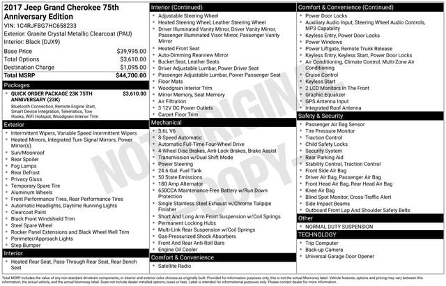 2017 Jeep Grand Cherokee Limited 75th Anniversary Edition