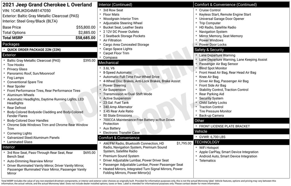 Baltic Gray Metallic Clearcoat 2021 Jeep Grand Cherokee L Overland 4WD 8-Speed Automatic 3.6L V6 24V VVT