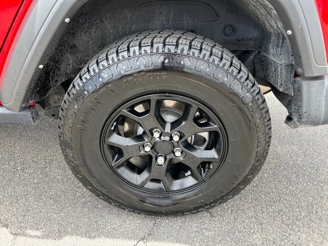 Under the hood, you'll find a 3.6L V6 engine paired with an 8-speed automatic transmission, delivering a balance of power and efficiency. The Willys trim enhances off-road capability with the Xtreme Recon package, which includes 35-inch BF Goodrich KO2 all-terrain tires, a 1.5-inch suspension lift, and upgraded brakes. These features ensure that the Wrangler is ready to tackle any trail or terrain with confidence.