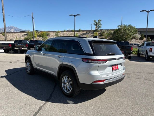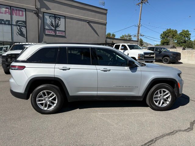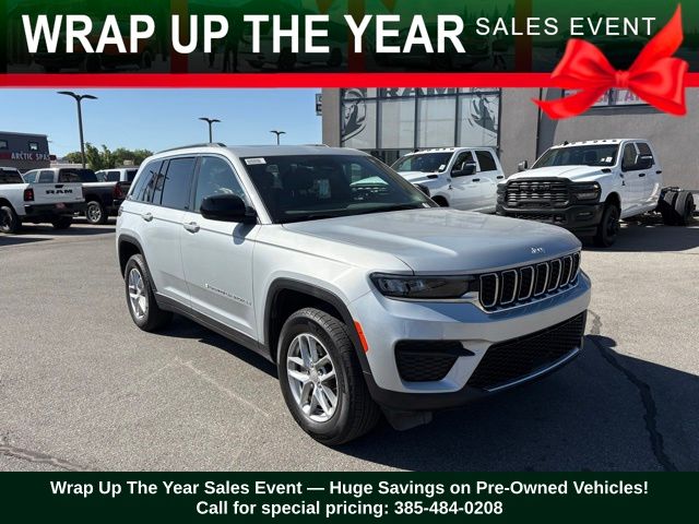 This 2025 Jeep Grand Cherokee Laredo is a new car service loaner with very low miles, offering the perfect combination of modern capability, comfort, and advanced technology. Powered by a responsive engine, it delivers smooth and confident performance on both city streets and light off-road adventures. The exterior features Jeeps iconic styling with bold lines, a distinctive grille, and durable construction built to handle any journey. Inside, the cabin is spacious and well-appointed, featuring a touchscreen infotainment system, Bluetooth connectivity, Apple CarPlay and Android Auto integration, and comfortable seating for passengers. Safety features include multiple airbags, stability control, and a rearview camera, giving you peace of mind on every drive. Whether commuting, road-tripping, or exploring rugged terrain, the 2025 Grand Cherokee Laredo provides versatility, reliability, and comfort. The online price already reflects a $1,000 financing discount when you finance through Salt Lake Valley Chrysler Dodge Jeep Ram, adding extra value to this practically new, low-mileage vehicle.