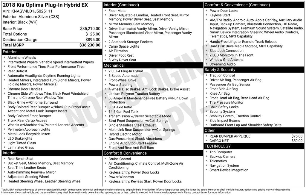 2018 Kia Optima Plug-In Hybrid EX Recent Arrival!