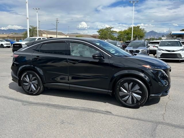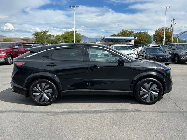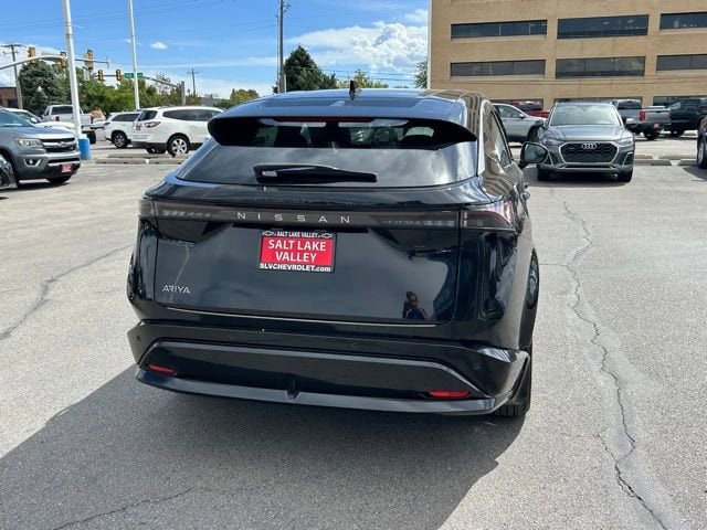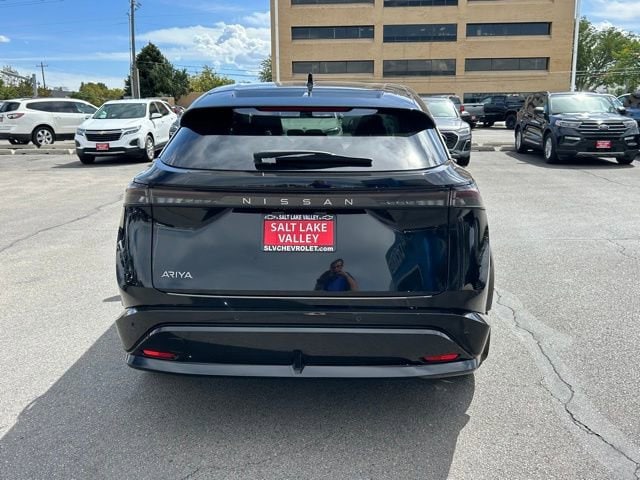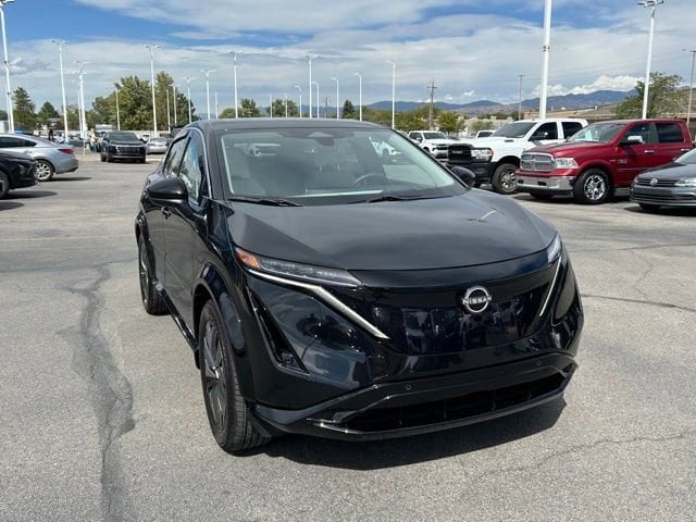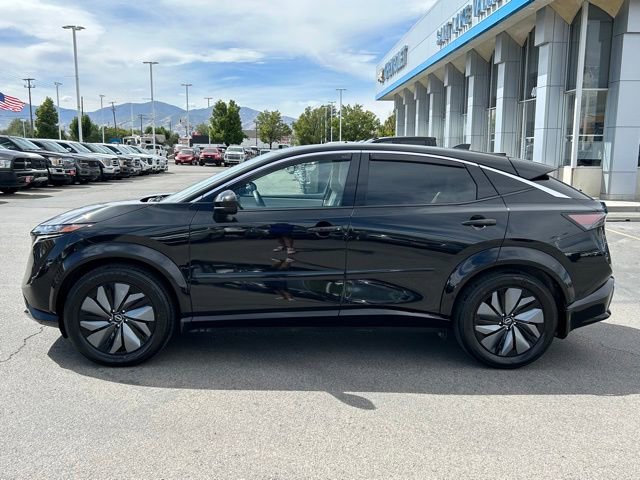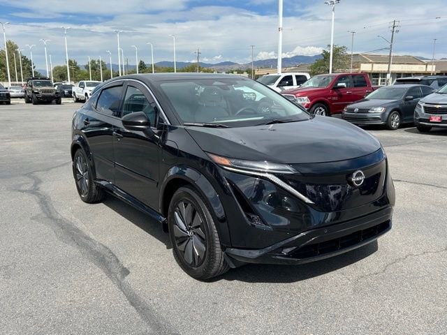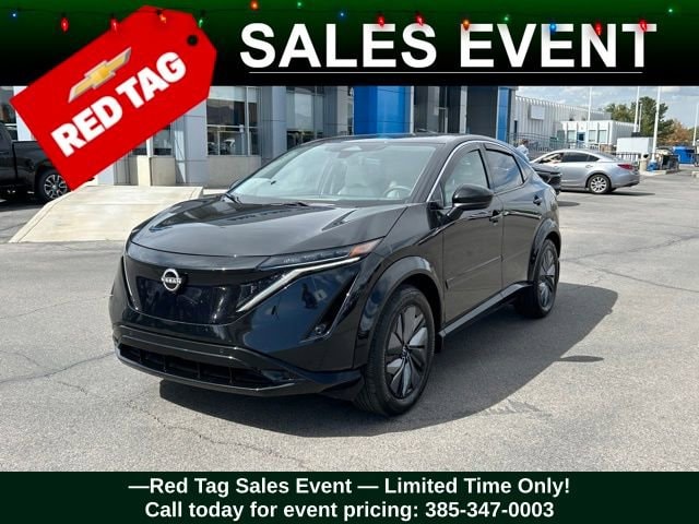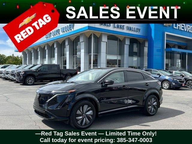 This Nissan Ariya is packed with all your favorite features and includes a $1,000 finance savings, already included into the sale price, when you finance through one of our trusted lending partners! Explore more quality vehicles at www.slvchevrolet.com or call 801-969-8221 today! Enjoy the great options on this Ariya like 19 Alloy Wheels, 4-Wheel Disc Brakes, 6 Speakers, ABS brakes, Air Conditioning, Alloy wheels, AM/FM radio: SiriusXM, Auto High-beam Headlights, Automatic temperature control, Brake assist, Bumpers: body-color, Carpeted Floor Mats & First Aid Kit, Delay-off headlights, Driver door bin, Driver vanity mirror, Dual front impact airbags, Dual front side impact airbags, Electronic Stability Control, Emergency communication system: NissanConnect EV & Services, Four wheel independent suspension, Front anti-roll bar, Front Bucket Seats, Front Center Armrest, Front dual zone A/C, Front reading lights, Heads-Up Display, Heated door mirrors, Heated Front Bucket Seats, Heated front seats, Heated rear seats, Heated steering wheel, Illuminated entry, Knee airbag, Leather steering wheel, Leatherette Seating Surfaces, Low tire pressure warning, Memory seat, Navigation system: Nissan Door to Door Connected Navigation, Occupant sensing airbag, Outside temperature display, Overhead airbag, Panic alarm, Passenger door bin, Passenger vanity mirror, Power door mirrors, Power driver seat, Power steering, Power windows, Radio: NissanConnect EV w/Navigation, Rear anti-roll bar, Rear reading lights, Rear seat center armrest, Rear side impact airbag, Rear window defroster, Rear window wiper, Remote keyless entry, Security system, Speed control, Speed-sensing steering, Speed-Sensitive Wipers, Split folding rear seat, Spoiler, Steering wheel mounted audio controls, Telescoping steering wheel, Tilt steering wheel, Traction control, Trip computer, and Variably intermittent wipers.