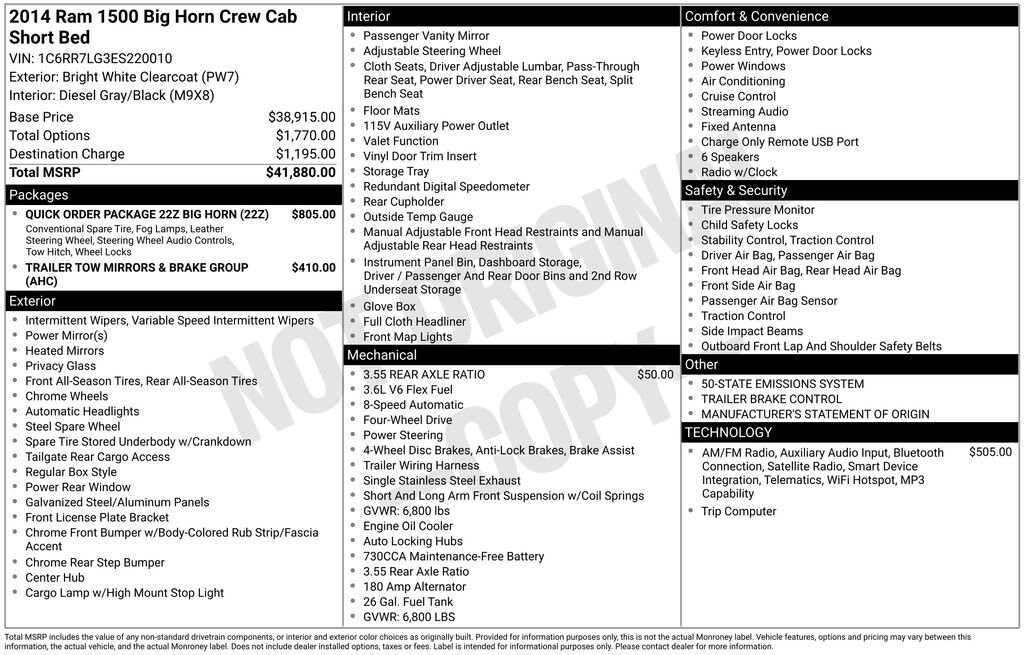 Bright White Clearcoat 2014 Ram 1500 Big Horn 4WD 8-Speed Automatic 3.6L V6 24V VVTRecent Arrival!Check out our 5 Star Google Reviews! Drive a little save a lot. Sale Price Includes $1,000 Finance Savings. Contact Dealer For Details.