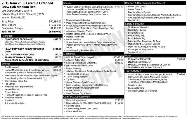 Take your drives to the next level with this Ram 2500 from Salt Lake Valley Buick GMC! Engineered for a smooth ride, advanced convenience, and lasting dependability, this vehicle is ready to handle everything your day throws at you. Plus, enjoy a $1,000 finance savings, already included in the sale price, when you finance through one of our trusted lending partners. Looking for quality used cars in Salt Lake City? This Ram 2500 delivers style, versatility, and value - perfect for daily commutes, family trips, or weekend adventures. Stop by Salt Lake Valley Buick GMC to see this vehicle in person and explore our wide selection of pre-owned cars, trucks, and SUVs. Browse online at www.slvbuickgmc.com or call 801-265-1511 to schedule your test drive today! With Cold Weather Group (Engine Block Heater and Winter Front Grille Cover), Convenience Group (Auto High Beam Headlamp Control and Rain Sensitive Windshield Wipers), Heavy Duty Snow Plow Prep Group, Protection Group, Quick Order Package 2FH Laramie, 1 Year Trial (Registration Required), 10 Speakers, 115V Auxiliary Power Outlet, 220 Amp Alternator, 4-Wheel Disc Brakes, 5-Year SiriusXM Traffic Service, 5-Year SiriusXM Travel Link Service, 8.4 Touchscreen Display, ABS brakes, Air Conditioning, Alloy wheels, AM/FM radio: SiriusXM, Anti-Spin Differential Rear Axle, Audio memory, Auto-dimming door mirrors, Auto-dimming Rear-View mirror, Automatic temperature control, Brake assist, Bumpers: chrome, Center Hub, Chrome Exterior Mirrors, Compass, Delay-off headlights, Driver door bin, Driver vanity mirror, Dual front impact airbags, Dual front side impact airbags, Electronic Stability Control, Electronically Controlled Throttle, Emergency communication system, Exterior Mirrors Courtesy Lamps, Exterior Mirrors w/Heating Element, Exterior Mirrors w/Memory, Exterior Mirrors w/Supplemental Signals, Front anti-roll bar, Front Bumper Sight Shields, Front Center Armrest w/Storage, Front dual zone A/C, Front fog lights, Front reading lights, Fully automatic headlights, Garage door transmitter, GPS Antenna Input, GPS Navigation, Harman Radio Manufacturer, HD Radio, Heated door mirrors, Heated Front Seats, Heated front seats, Heated steering wheel, Hemi Badge, High Back Seats, Illuminated entry, Integrated Voice Command w/Bluetooth, Keyless Enter-N-Go, Leather steering wheel, Leather Trim 40/20/40 Bench Seat, Low tire pressure warning, Manufacturer's Statement of Origin, Media Hub (SD, USB, AUX), Memory seat, Next Generation Engine Controller, Occupant sensing airbag, Outside temperature display, Overhead airbag, Overhead console, Panic alarm, ParkView Rear Back-Up Camera, Passenger door bin, Passenger vanity mirror, Power 10-Way Memory Driver & 6-Way Passenger Seats, Power door mirrors, Power driver seat, Power Folding Chrome Trailer Tow Mirrors, Power Folding Mirrors, Power Lumbar Adjust, Power passenger seat, Power steering, Power Sunroof, Power windows, Radio data system, Radio: Uconnect 8.4A AM/FM/SXM/BT, Radio: Uconnect 8.4AN AM/FM/SXM/HD/BT/NAV, Rear 60/40 Split Folding Seat, Rear seat center armrest, Rear step bumper, Remote keyless entry, Remote Proximity Keyless Entry, Remote Start System, Security system, SiriusXM Satellite Radio, SiriusXM Traffic, SiriusXM Travel Link, Speed control, Split folding rear seat, Steering wheel mounted audio controls, Tachometer, Tilt steering wheel, Tip Start, Traction control, Trailer Tow Mirrors, Transmission Oil Cooler, Trip computer, Turn signal indicator mirrors, Uconnect Access, Variably intermittent wipers, Ventilated front seats, Voltmeter, and Wheels: 18 x 8.0 Polished Aluminum designed for convenience and enjoyment, this Ram 2500 is ready to take you wherever you want to go.Odometer is 69292 miles below market average!Reviews:* Monumental torque with diesel and automatic powertrain; high-quality cabin; Mega Cab's roomy rear seat; highly off-road-capable Power Wagon version; quiet, comfortable ride. Source: Edmunds