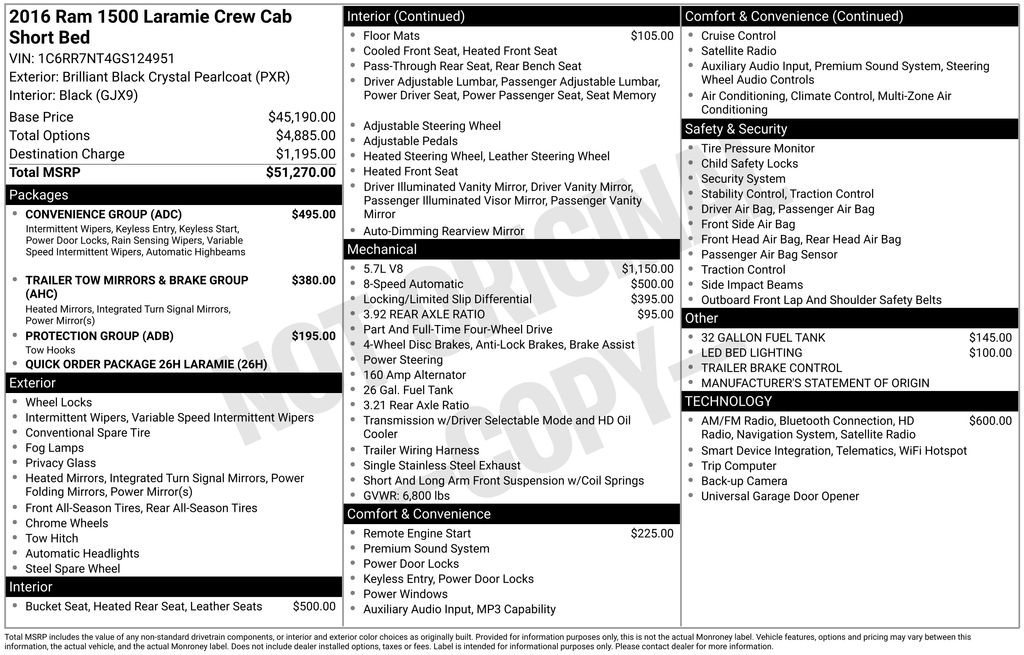 Brilliant Black Crystal Pearlcoat 2016 Ram 1500 Laramie 4WD 8-Speed Automatic HEMI 5.7L V8 Multi Displacement VVT
