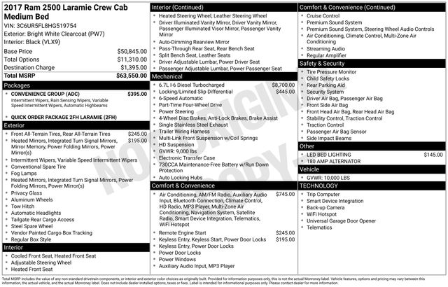 Get ready to hit the road in this Ram 2500, a standout choice for drivers looking for reliability, performance, and style! This impressive vehicle is packed with premium features designed to make every drive more enjoyable. Plus, youâll enjoy a $1,000 finance savings, already included in the sale price, when you finance through one of our trusted lending partners. Whether youâre searching for used cars in Salt Lake City, a dependable SUV, or a powerful truck, this Ram 2500 delivers everything you need and more. Visit Salt Lake Valley Chrysler Dodge Jeep Ram today to test drive or explore our entire selection of quality pre-owned vehicles. Donât wait - shop online at www.slvcdjr.com or call 801-484-8755 to learn more! This amazing vehicle comes loaded with options like Convenience Group (Auto High Beam Headlamp Control and Rain Sensitive Windshield Wipers), Quick Order Package 2FH Laramie (Front Armrest w/Cupholders), 1 Year Trial (Registration Required), 10 Speakers, 115V Auxiliary Power Outlet, 180 Amp Alternator, 4-Wheel Disc Brakes, 5-Year SiriusXM Traffic Service, 5-Year SiriusXM Travel Link Service, 8.4" Touchscreen Display, ABS brakes, Air Conditioning, Air Conditioning ATC w/Dual Zone Control, Alloy wheels, AM/FM radio: SiriusXM, Anti-Spin Differential Rear Axle, Audio memory, Auto-dimming door mirrors, Auto-dimming Rear-View mirror, Automatic temperature control, Brake assist, Bumpers: chrome, Chrome Exterior Mirrors, Compass, Delay-off headlights, Driver door bin, Driver vanity mirror, Dual front impact airbags, Dual front side impact airbags, Electronic Stability Control, Emergency communication system: Uconnect Access, Exterior Mirrors Courtesy Lamps, Exterior Mirrors w/Heating Element, Exterior Mirrors w/Memory, Exterior Mirrors w/Supplemental Signals, For Details Visit DriveUconnect.com, Front anti-roll bar, Front Center Armrest w/Storage, Front dual zone A/C, Front fog lights, Front reading lights, Fully automatic headlights, Garage door transmitter, GPS Antenna Input, GPS Navigation, HD Radio, Heated door mirrors, Heated Front Seats, Heated front seats, Heated steering wheel, Illuminated entry, Integrated Voice Command w/Bluetooth, Keyless Enter-N-Go, Leather steering wheel, Leather Trim 40/20/40 Bench Seat, LED Bed Lighting, Low tire pressure warning, Media Hub (2 USB, AUX), Media Hub (USB, AUX), Memory seat, Occupant sensing airbag, Outside temperature display, Overhead airbag, Overhead console, Panic alarm, ParkView Rear Back-Up Camera, Passenger door bin, Passenger vanity mirror, Power door mirrors, Power driver seat, Power Folding Chrome Trailer Tow Mirrors, Power Folding Mirrors, Power passenger seat, Power steering, Power windows, Radio data system, Radio: Uconnect 3C Nav w/8.4" Display, Radio: Uconnect 3C w/8.4" Display, Rear seat center armrest, Rear step bumper, Remote keyless entry, Remote Proximity Keyless Entry, Remote Start System, Security system, SiriusXM Satellite Radio, SiriusXM Traffic, SiriusXM Travel Link, Speed control, Split folding rear seat, Steering wheel mounted audio controls, Tachometer, Tilt steering wheel, Traction control, Trailer Tow Mirrors, Trip computer, Turn signal indicator mirrors, Uconnect Access, Variably intermittent wipers, Vendor Painted Cargo Box Tracking, Ventilated front seats, Voltmeter, and Wheels: 18" x 8.0" Polished Aluminum, making it the perfect choice for your next adventure.