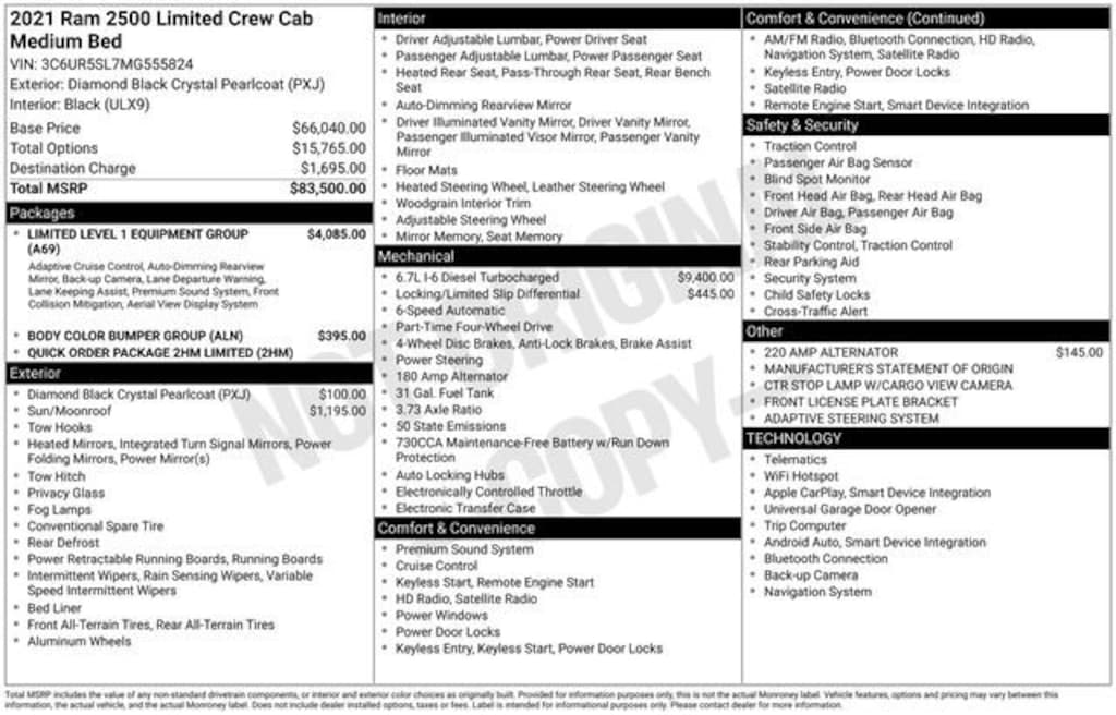 Take your drives to the next level with this Ram 2500 from Salt Lake Valley Buick GMC! Engineered for a smooth ride, advanced convenience, and lasting dependability, this vehicle is ready to handle everything your day throws at you. Plus, enjoy a $1,000 finance savings, already included in the sale price, when you finance through one of our trusted lending partners. Looking for quality used cars in Salt Lake City? This Ram 2500 delivers style, versatility, and value - perfect for daily commutes, family trips, or weekend adventures. Stop by Salt Lake Valley Buick GMC to see this vehicle in person and explore our wide selection of pre-owned cars, trucks, and SUVs. Browse online at www.slvbuickgmc.com or call 801-265-1511 to schedule your test drive today! With Body Color Bumper Group (Painted Front Bumper and Painted Rear Bumper), Limited Level 1 Equipment Group (17 Speaker harman kardon Premium Sound, Adaptive Cruise Control w/Stop, Adaptive Steering System, CTR Stop Lamp w/Cargo View Camera, Digital Rearview Mirror, Full Speed Forward Collision Warning Plus, Lane Keep Assist, Surround View Camera System, and Trailer Reverse Guidance), Quick Order Package 2HM Limited, 1-Year SiriusXM Guardian Trial, 10 Speakers, 12 Touchscreen Display, 220 Amp Alternator, 3.73 Axle Ratio, 4-Wheel Disc Brakes, 4G LTE Wi-Fi Hot Spot, ABS brakes, Active Noise Control System, Adjustable pedals, Air Conditioning, Alloy wheels, AM/FM radio: SiriusXM with 360L, Anti-Spin Differential Rear Axle, Apple CarPlay, Apple CarPlay/Android Auto, Audio memory, Auto High-beam Headlights, Auto-dimming Rear-View mirror, Automatic temperature control, Bodyside moldings, Brake assist, Bumpers: chrome, Compass, Delay-off headlights, Disassociated Touchscreen Display, Driver door bin, Driver vanity mirror, Dual front impact airbags, Dual front side impact airbags, Electronic Stability Control, Electronically Controlled Throttle, Emergency communication system: SiriusXM Guardian, Front anti-roll bar, Front Bucket Seats, Front Center Armrest w/Storage, Front dual zone A/C, Front fog lights, Front License Plate Bracket, Front reading lights, Fully automatic headlights, Garage door transmitter, Genuine wood console insert, Genuine wood dashboard insert, Genuine wood door panel insert, Google Android Auto, GPS Antenna Input, GPS Navigation, HD Radio, Heated door mirrors, Heated front seats, Heated rear seats, Heated steering wheel, Illuminated entry, Integrated Voice Command w/Bluetooth, Leather steering wheel, Limited Leather Bucket Seats, Low tire pressure warning, Manufacturer's Statement of Origin, Memory seat, Navigation System, Occupant sensing airbag, Outside temperature display, Overhead airbag, Overhead console, Panic alarm, ParkView Rear Back-Up Camera, Passenger door bin, Passenger vanity mirror, Pedal memory, Power door mirrors, Power driver seat, Power passenger seat, Power steering, Power Sunroof, Power windows, Radio data system, Radio: Uconnect 12.0 w/Navigation, Rain sensing wipers, Rear anti-roll bar, Rear reading lights, Rear seat center armrest, Rear step bumper, Rear window defroster, Remote keyless entry, Security system, SiriusXM Satellite Radio, SiriusXM Traffic Plus, SiriusXM Travel Link, SiriusXM w/360L, Speed control, Split folding rear seat, Steering wheel mounted audio controls, Tachometer, Tilt steering wheel, Tip Start, Traction control, Trip computer, Turn signal indicator mirrors, Variably intermittent wipers, Ventilated front seats, Voltmeter, and Wheels: 20 x 8.0 Satin Carbon w/Chrome Inserts designed for convenience and enjoyment, this Ram 2500 is ready to take you wherever you want to go.