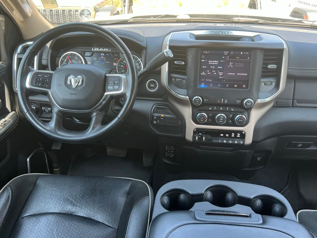 Check out our award winning dealership! 5-star google review, drive a little save a lot. Bed Utility Group (LED Bed Lighting, MOPAR Deployable Bed Step, and MOPAR Spray In Bedliner), Quick Order Package 2HH Laramie, Navigation System, 10 Speakers, 115V Auxiliary Rear Power Outlet, 2 Way Rear Headrest Seat, 220 Amp Alternator, 3.73 Axle Ratio, 4 Way Front Headrests, 4-Wheel Disc Brakes, 4G LTE Wi-Fi Hot Spot, 8.4" Touchscreen Display, ABS brakes, Active Noise Control System, Adjustable pedals, Air Conditioning, Alloy wheels, AM/FM radio: SiriusXM, Anti-Spin Differential Rear Axle, Apple CarPlay, Apple CarPlay/Android Auto, Auto-dimming Rear-View mirror, Automatic temperature control, Bluetooth Handsfree Phone & Audio, Brake assist, Bumpers: chrome, Chrome Exterior Mirrors, Compass, Connectivity - US/Canada, Delay-off headlights, Driver door bin, Driver vanity mirror, Dual front impact airbags, Dual front side impact airbags, Electronic Stability Control, Electronically Controlled Throttle, Exterior Mirrors Courtesy Lamps, Exterior Mirrors w/Heating Element, Exterior Mirrors w/Supplemental Signals, Front anti-roll bar, Front Center Armrest w/Storage, Front dual zone A/C, Front fog lights, Front License Plate Bracket, Front reading lights, Front Seat Back Map Pockets, Fully automatic headlights, Garage door transmitter, Global Telematics Box Module (TBM), Google Android Auto, GPS Antenna Input, Heated door mirrors, Heated Front Seats, Heated front seats, Heated Steering Wheel, Heated steering wheel, Illuminated entry, Integrated Center Stack Radio, Integrated Voice Command w/Bluetooth, Leather steering wheel, Leather Trim 40/20/40 Bench Seat, Low tire pressure warning, Manufacturer's Statement of Origin, Mirror Running Lights, Occupant sensing airbag, Outside temperature display, Overhead airbag, Overhead console, Panic alarm, ParkView Rear Back-Up Camera, Passenger door bin, Passenger vanity mirror, Power 2-Way Driver Lumbar Adjust, Power 2-Way Passenger Lumbar Adjust, Power Adjust 8-Way Driver Seat, Power Adjust 8-Way Front Passenger Seat, Power door mirrors, Power driver seat, Power Folding Mirrors, Power passenger seat, Power steering, Power windows, Radio data system, Radio: Uconnect 5 W w/8.4" Display, Rear 60/40 Folding Seat, Rear anti-roll bar, Rear reading lights, Rear seat center armrest, Rear step bumper, Rear window defroster, Remote keyless entry, Security system, Selectable Tire Fill Alert, SiriusXM Radio Service, SiriusXM Satellite Radio, Speed control, Split folding rear seat, Steering wheel mounted audio controls, Tachometer, Tilt steering wheel, Tip Start, Tow Hooks, Traction control, Trailer Tow Mirrors, Trip computer, Turn signal indicator mirrors, Variably intermittent wipers, Vendor Painted Cargo Box, Vendor Painted Cargo Box Tracking, Voltmeter, and Wheels: 18" x 8.0" Polished Aluminum Sale Price Includes $1,000 Finance Savings. Contact Dealer For Details.